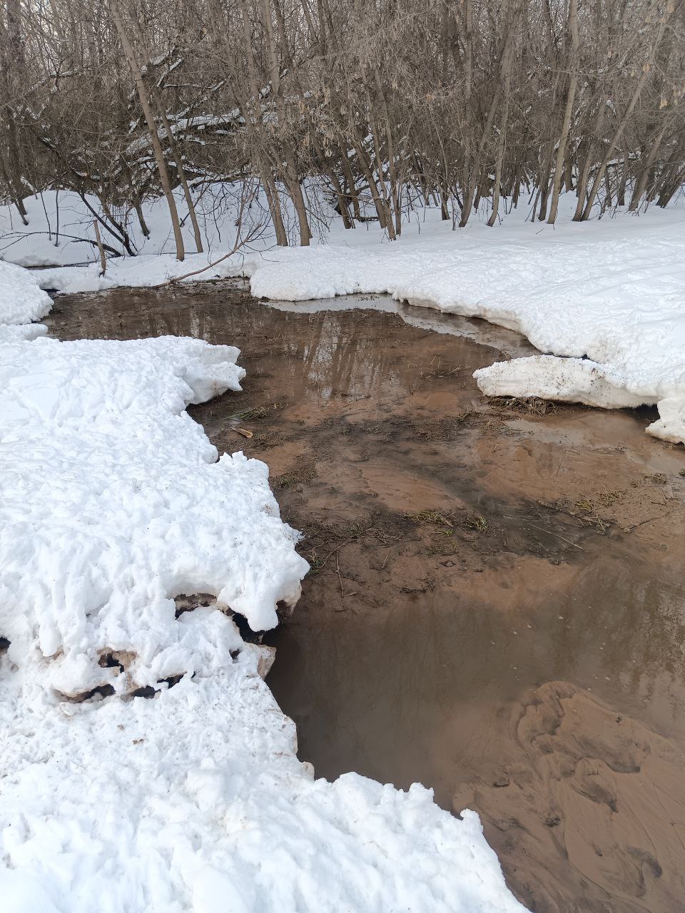 Снимками ручья, несущего тёплую воду с характерным запахом прямо в ООПТ "Русско-Немецкая Швейцария", поделился с "Idel.Реалии" экоактивист Тимур Ескараев.