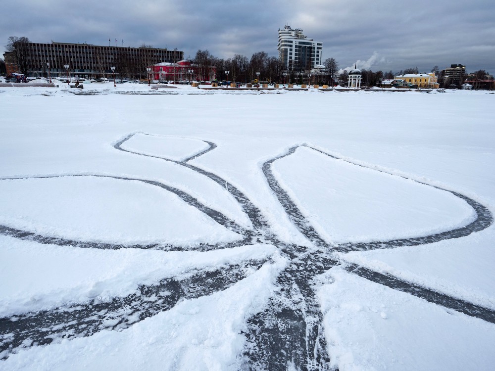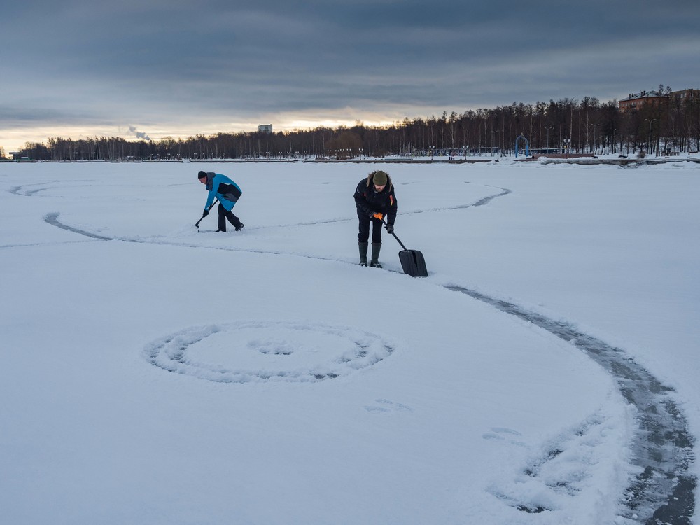 Буквально сразу в комментариях возникла идея: «А почему нам самим такое не сделать?» [И правда]: у нас озер полно, снега много, лопаты есть. Мы собрались с товарищами, поговорили об этом и подумали, что в первый раз хотим сделать простой рисунок.