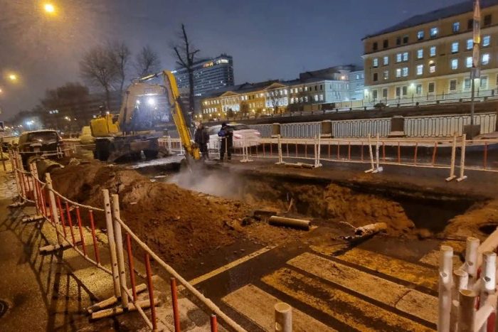 Сообщений о прорыве трубопровода не было. Как пишет «Фонтанка», скрытый дефект рядом с домом 173 по набережной реки Фонтанки обнаружили сами теплоэнергетики.