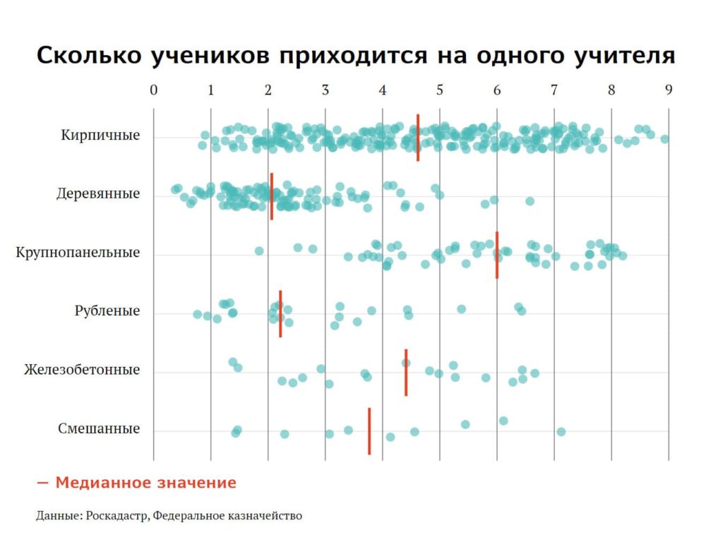 Стены ещё одного процента школ — «бетонные». Но речь, по всей видимости, идет про бетонные доски: «бетонное» формально и здание луговской школы — при этом в одном из отчётов районной администрации она называется деревянной. В некоторых других регионах школ из дерева ещё больше. Так, в Якутии, в Коми и в Тыве, судя по исследованию Высшей школы экономики, их около 70%.
