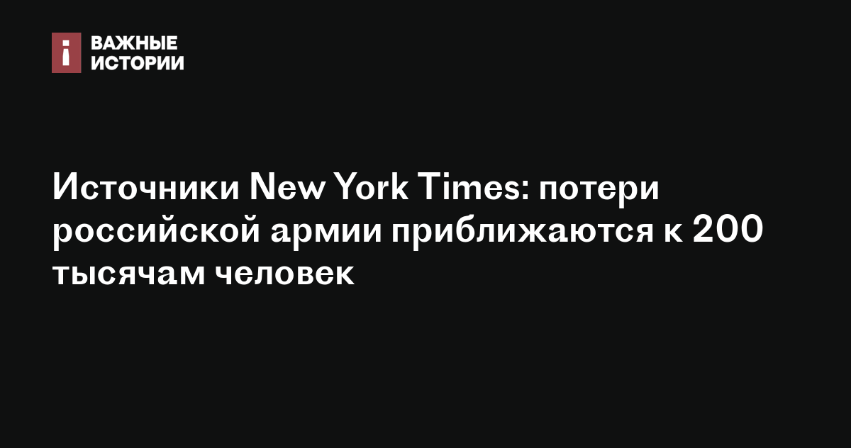 Источники New York Times: потери российской армии приближаются к 200 тысячам человек