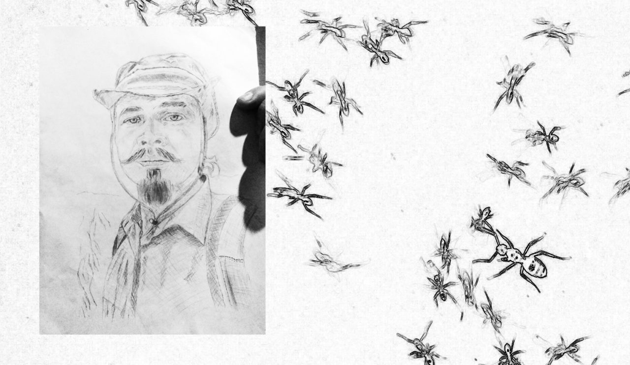 Автопортрет Александра, нарисованный карандашомФото: коллаж с использованием фото Hybridnighthawk/Unsplash и рисунка героя У парней изъяли фотоаппараты и начали смотреть все снимки. Долистали до тех, что Александр делал до приезда в Нувара-Элию, — на фото были сбитые машинами местные насекомые. Те, которых ученый подобрал вдоль дорог, и те, которых вытащил из плафонов ламп.