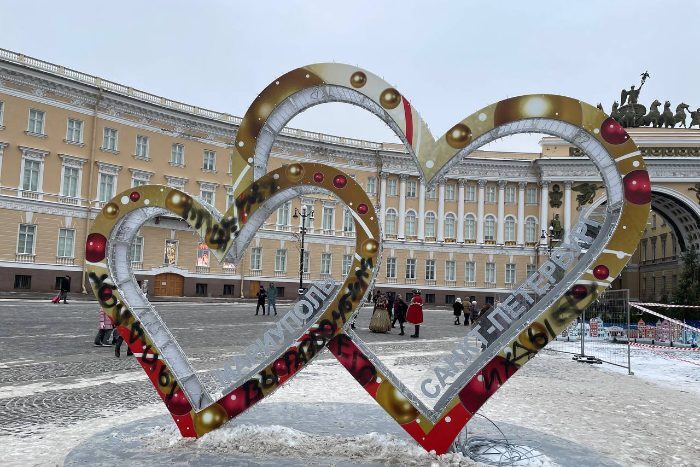 В декабре 2022 года на Дворцовой площади появился арт-объект, посвященный побратимству Петербурга с Мариуполем: два сердца с названиями городов. Жители встретили его неоднозначно и критиковали. 18 декабря на инсталляции оставили надпись «Убийцы, вы разбомбили его. Иуды». После этого конструкцию частично разобрали.