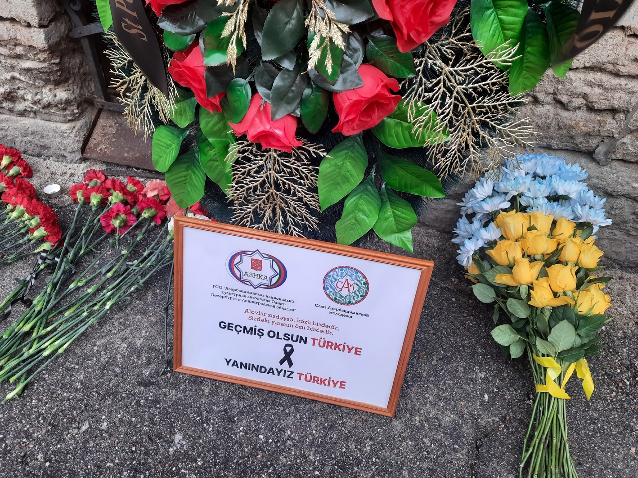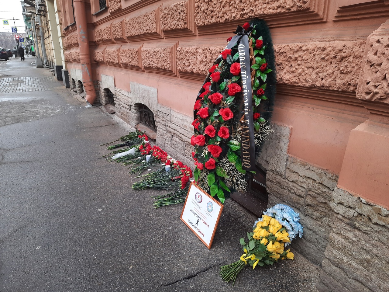 Петербуржцы несут цветы и свечи к зданию генконсульства Турецкой Республики на 7-й Советской улице.