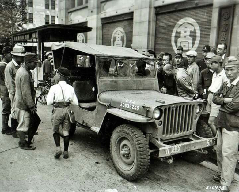 Первый американский джип на улицах оккупированного Токио, 30 августа 1945