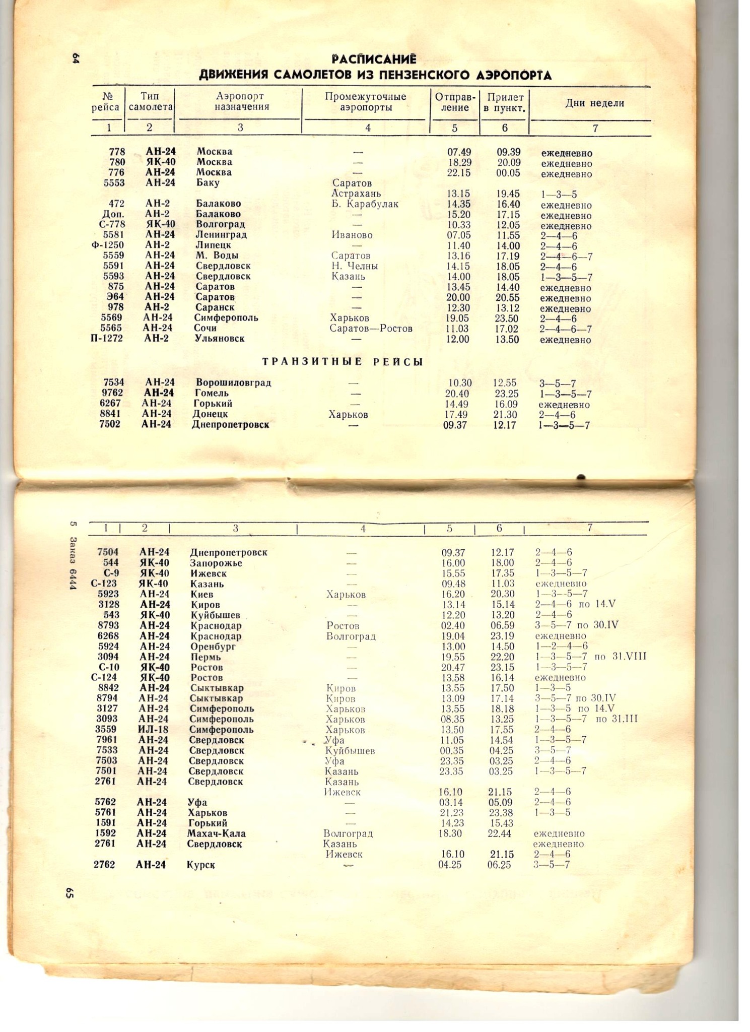 Это вот расписание работы аэропорта Пензы конца 70-х годов.