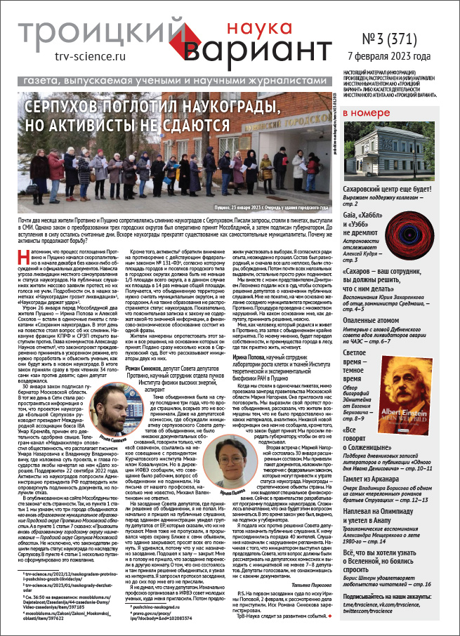 ТрВ № 3 (371) за 2023 г.: Серпухов поглотил наукограды, но активисты не сдаются