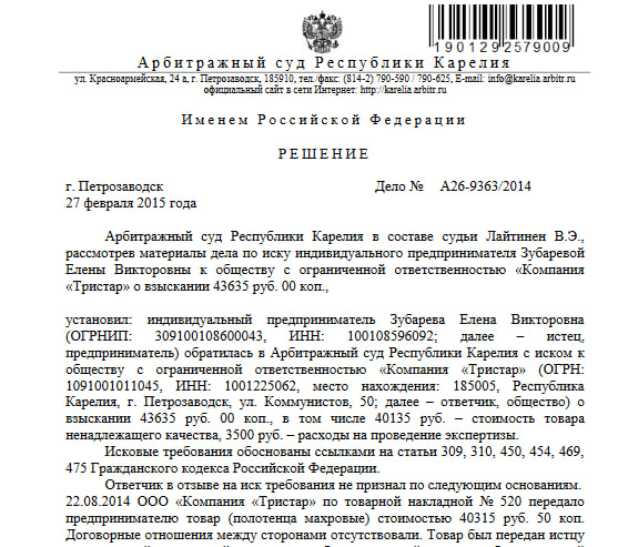 Также Зубарева, по данным Арбитражного суда, покупала полотенца для этой гостиницы.