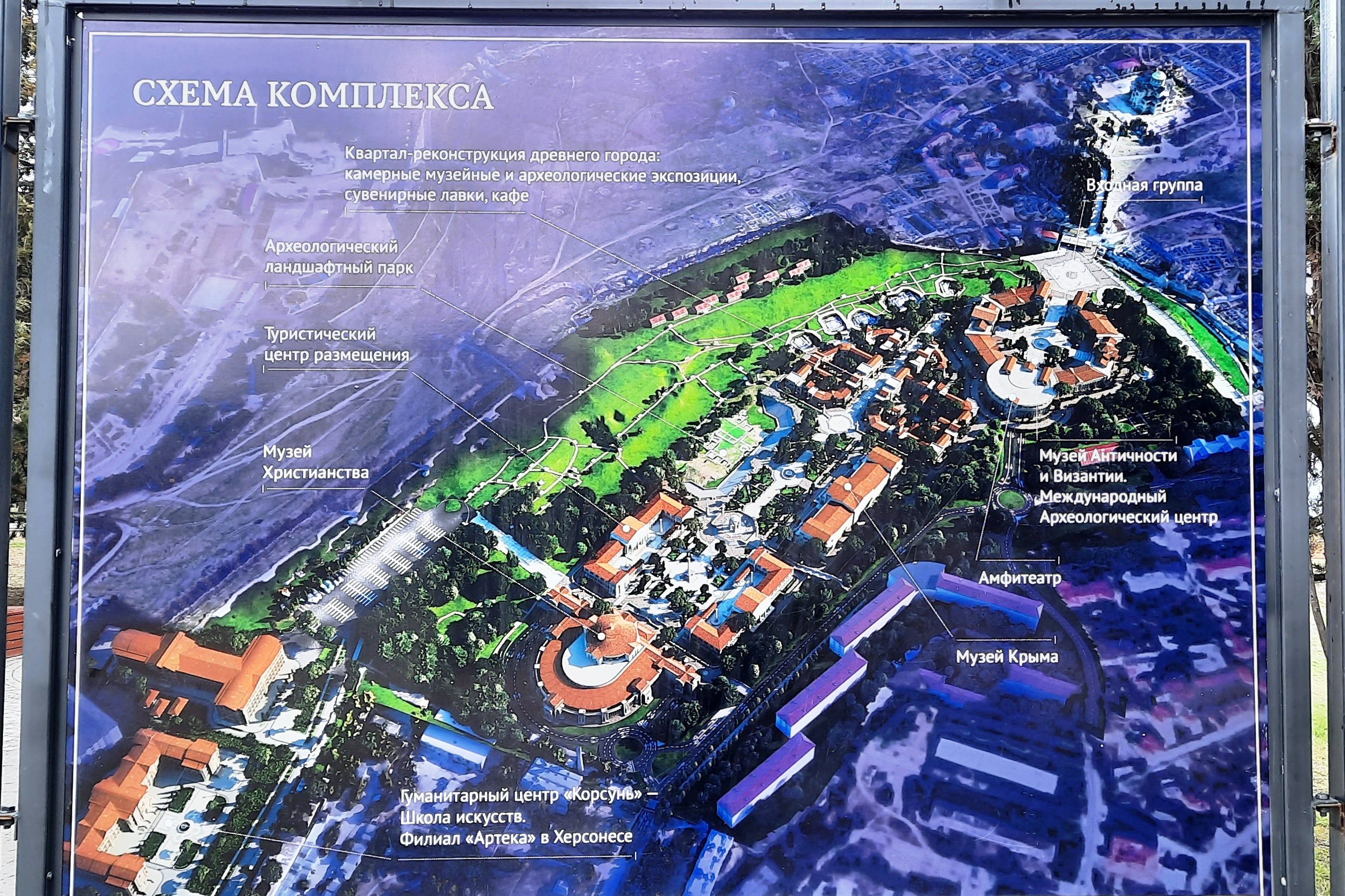 Вместе с ней на территории парка должны появиться образовательный центр "Корсунь" – филиал Международного детского центра "Артек", ландшафтный археологический парк, туристический и паломнический центры, реконструированный квартал древнего города, а также несколько музеев – истории Крыма, современного искусства, античности и Византии, христианства. Окончание всех работ запланировано на 2024 год.
