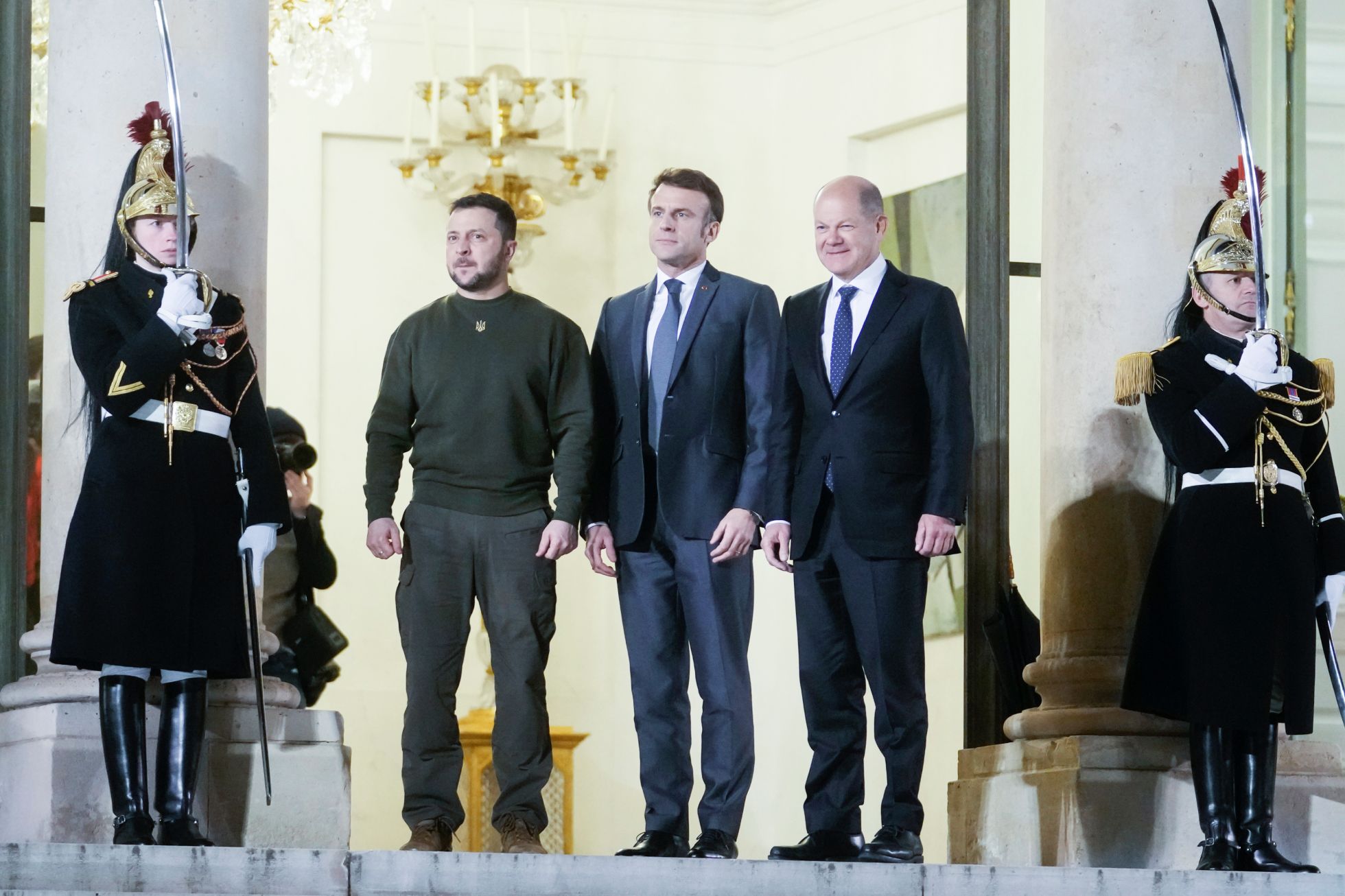 Thibault Camus / AP / Scanpix / LETA Президент Украины Владимир Зеленский вечером 8 февраля после визита в Великобританию прибыл в Париж. В Елисейском дворце его встретили президент Франции Эммануэль Макрон и канцлер ФРГ Олаф Шольц, специально прилетевший из Берлина. До этого момента Зеленский лишь единожды покидал Украину с начала полномасштабного российского вторжения в страну. В декабре 2022 года он посетил США. Ожидается, что 9 февраля президент Украины также посетит Брюссель, где примет участие в саммите ЕС.
