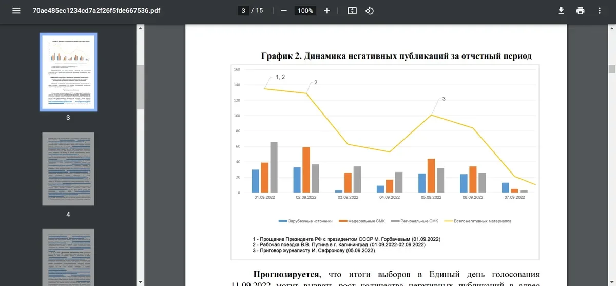 The reports also include the number of negative messages recorded over the period of monitoring, main newsworthy events, and “points of information tension” in Russian regions: that is, events that can cause a public outcry.