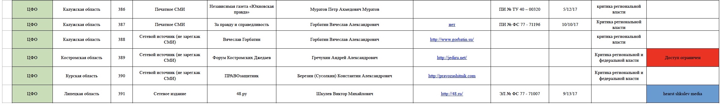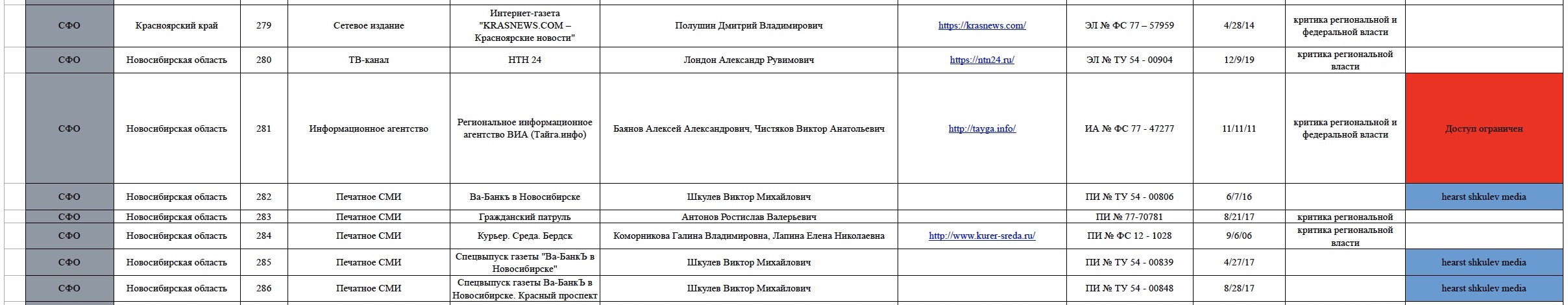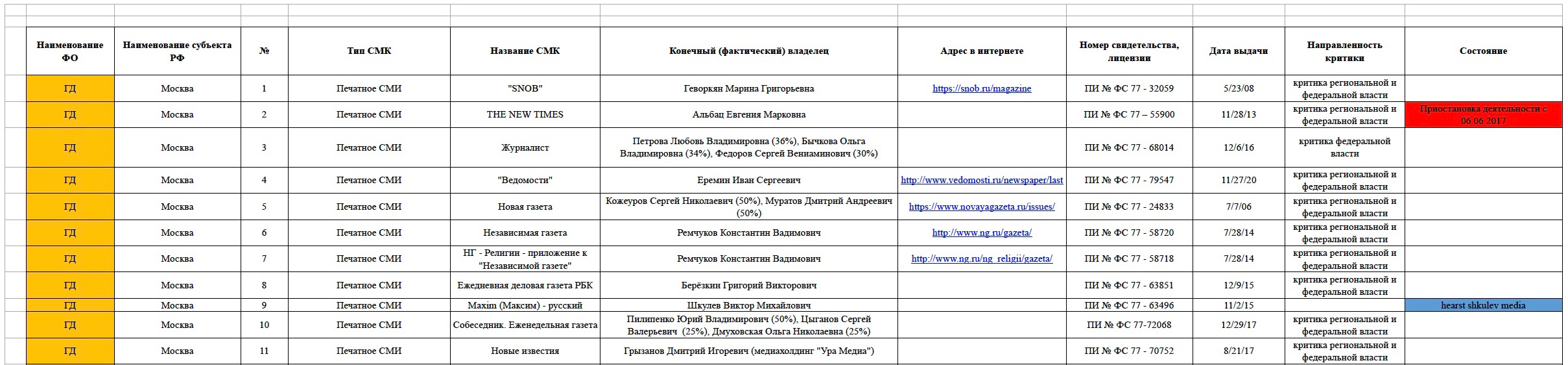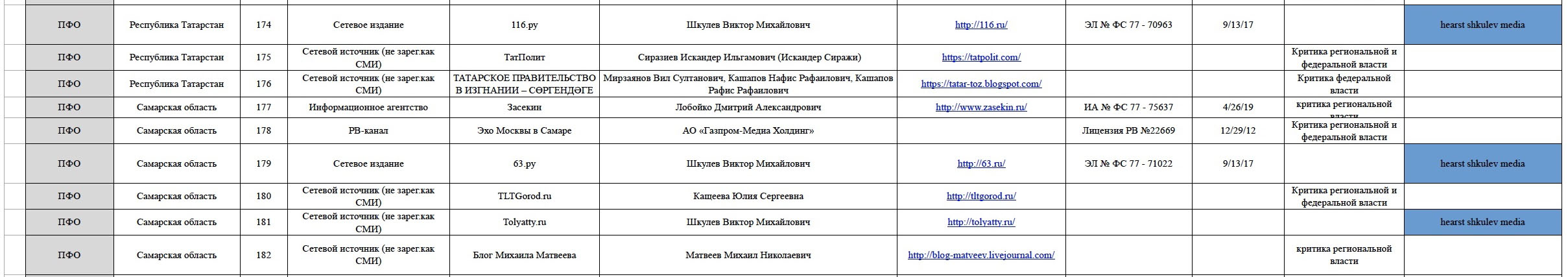 К «оппозиционным» изданиям Роскомнадзор причисляет и казалось бы достаточно лояльные медиа, например, «Ведомости», РБК и региональные издания «Московского комсомольца». Отдельно помечены 55 изданий «Шкулев Медиа Холдинга» — ведомство мониторит все издания холдинга и составляет по ним отдельные отчеты. В перечне Роскомнадзора оказался даже «Форум костромских джедаев» — местные СМИ писали, что он закрылся 16 марта 2022-го после блокировки за «недостоверную информацию» о войне в Украине.