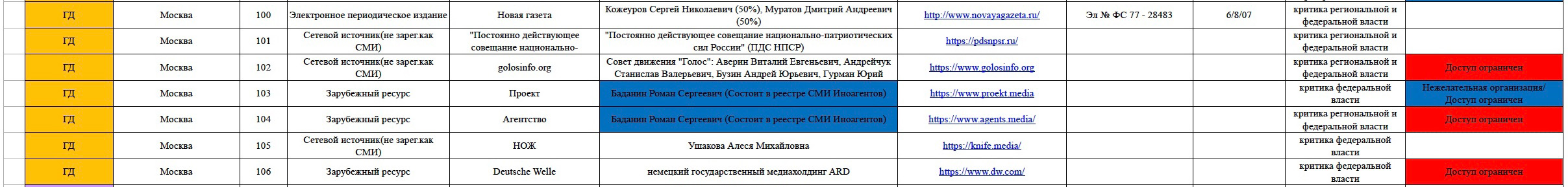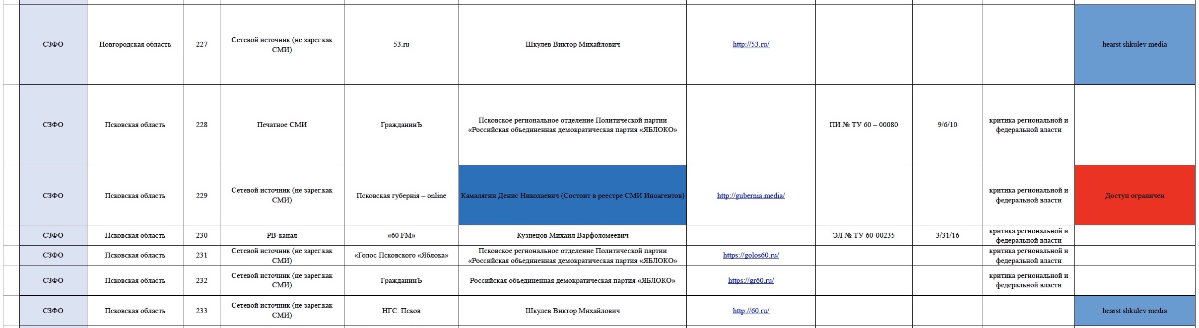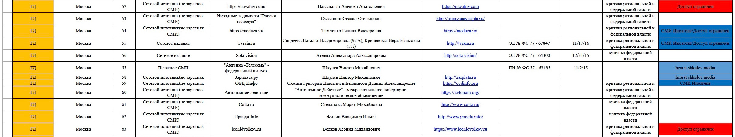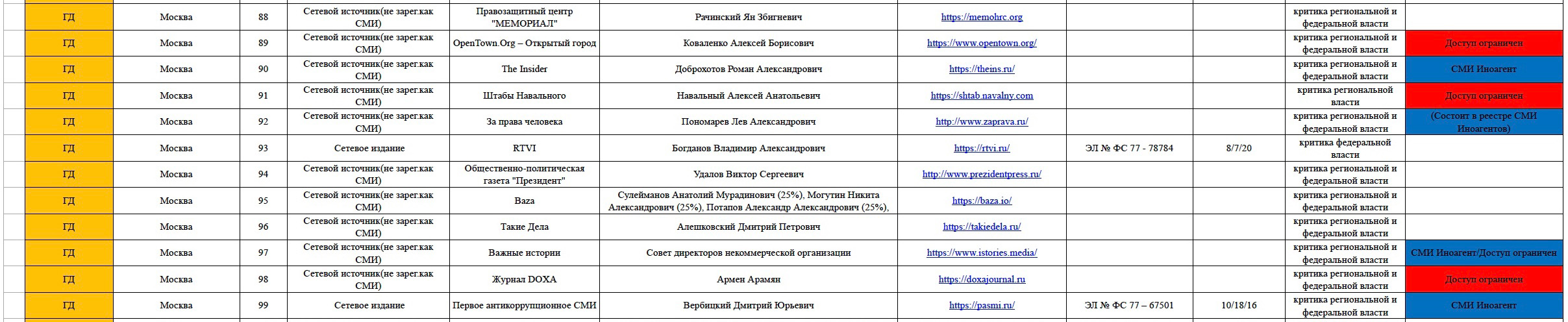 Список нелояльных. Роскомнадзор считает «оппозиционными» сотни российских медиа — документ