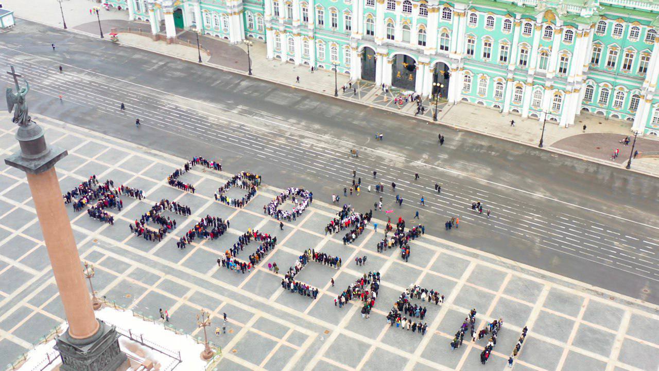 Так, за день до вторжения в Украину, 23 февраля 2022-го, около 1,5 тысячи молодых людей пришли на Дворцовую площадь, чтобы поддержать признание ЛДНР. Участники акции выстроились в лозунг «Своих не бросаем» и устроили шествие с флагами по Невскому проспекту. Как собралось такое количество людей, неизвестно: мероприятие не анонсировали в крупных сообществах. Организаторами выступили «Волонтерская рота» и «Молодая гвардия Единой России» («МГЕР»).