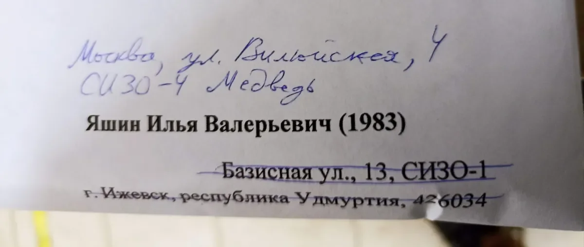 Оппозиционного политика Илью Яшина*, осужденного по статье о «фейках» про армию, вернули в московское СИЗО № 4. В конце декабря оппозиционера этапировали в СИЗО № 1 Ижевска до вступления приговора в законную силу. «Политзэки обычно дожидаются апелляции в своих городах, но для меня сделали исключение.
