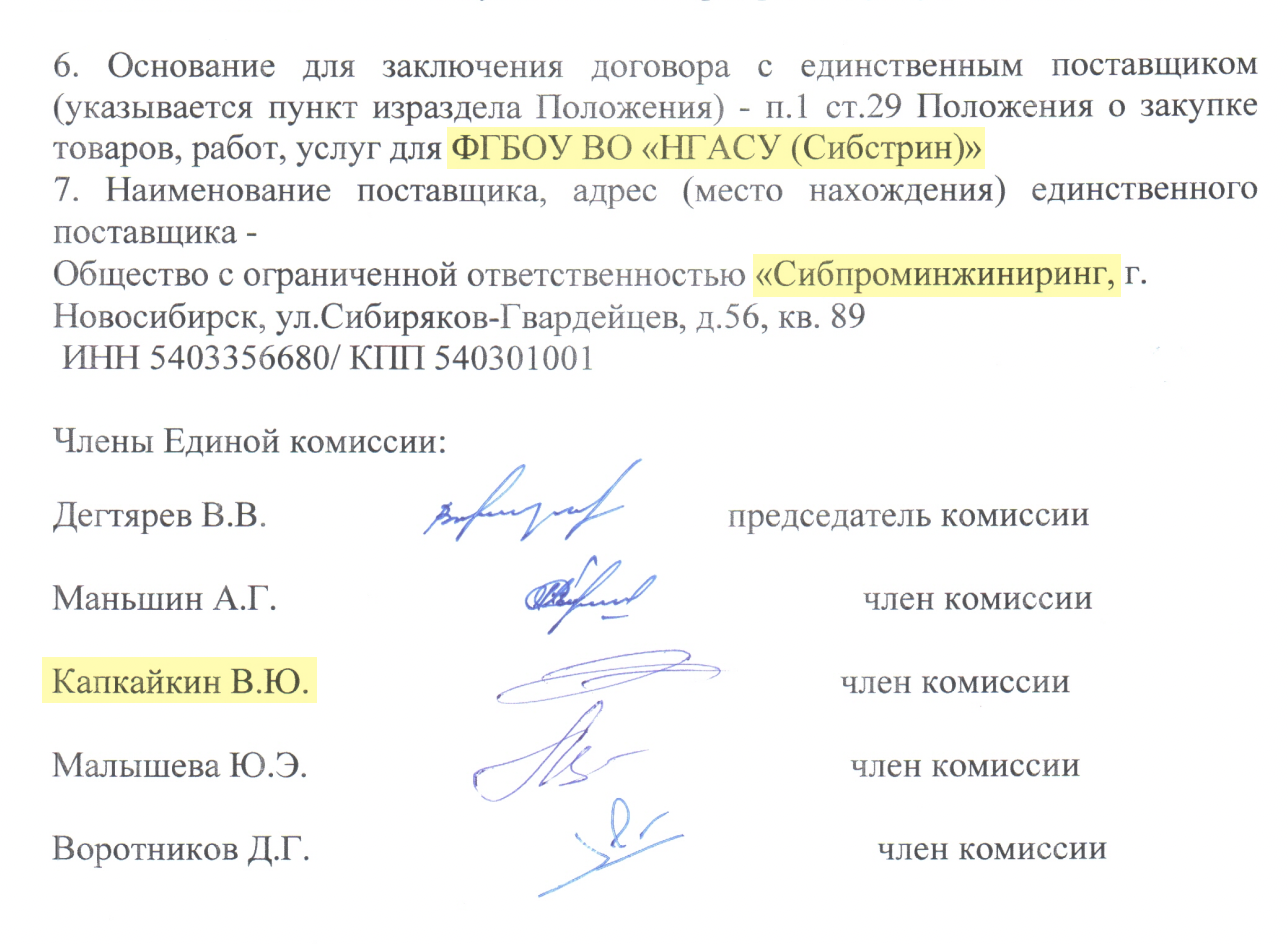 Да, то есть решение о том, чтобы Сибстрин заключил контракт с компанией Капкайкина Владимира Юрьевича подписывал в том числе некий Капкайкин В. Ю.