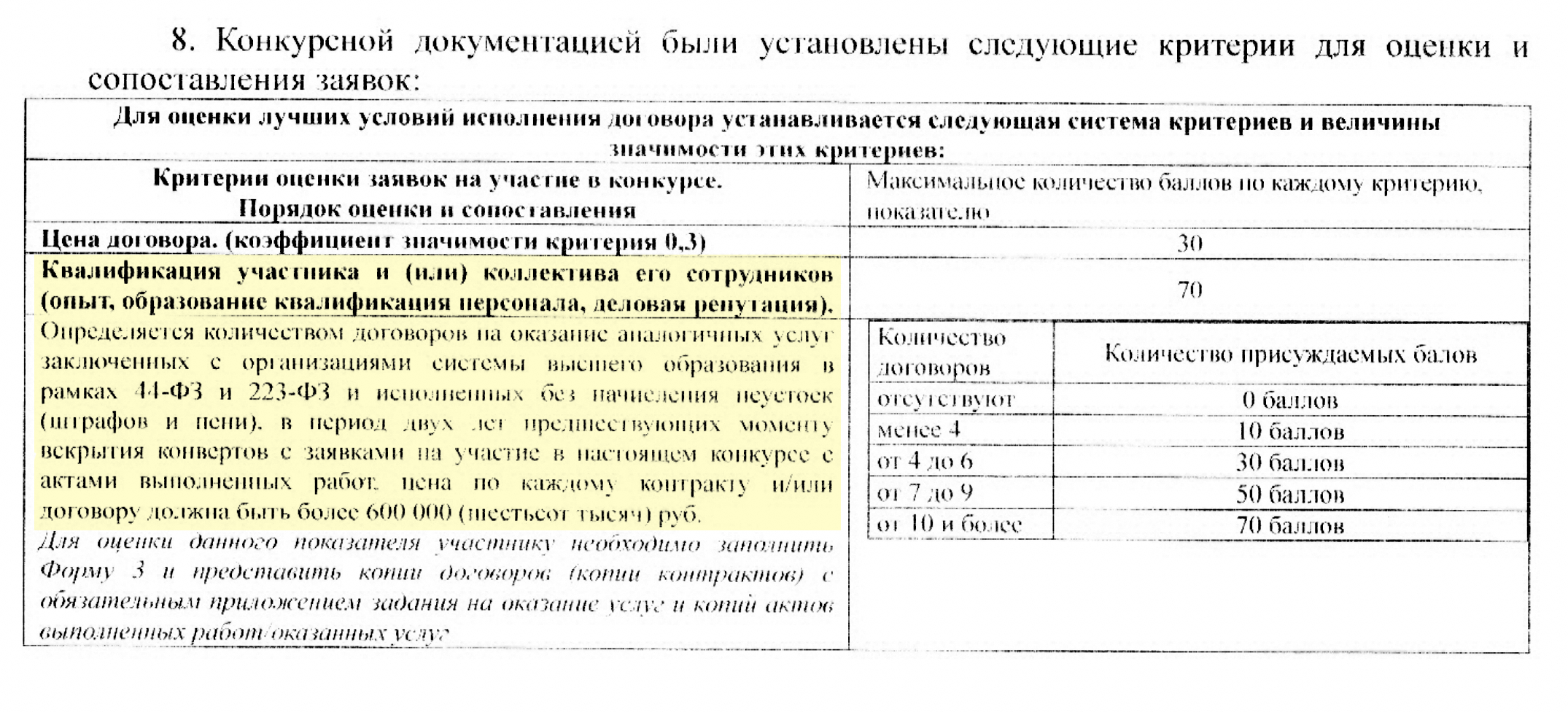 Сибстрин выбирал, с кем заключать контракт, не только по цене предложения, но и по критерию «Квалификация», которую сам же определил как «Количество договоров на оказание аналогичных услуг, заключенных с организациями системы высшего образования <…> в период [последних] двух лет».