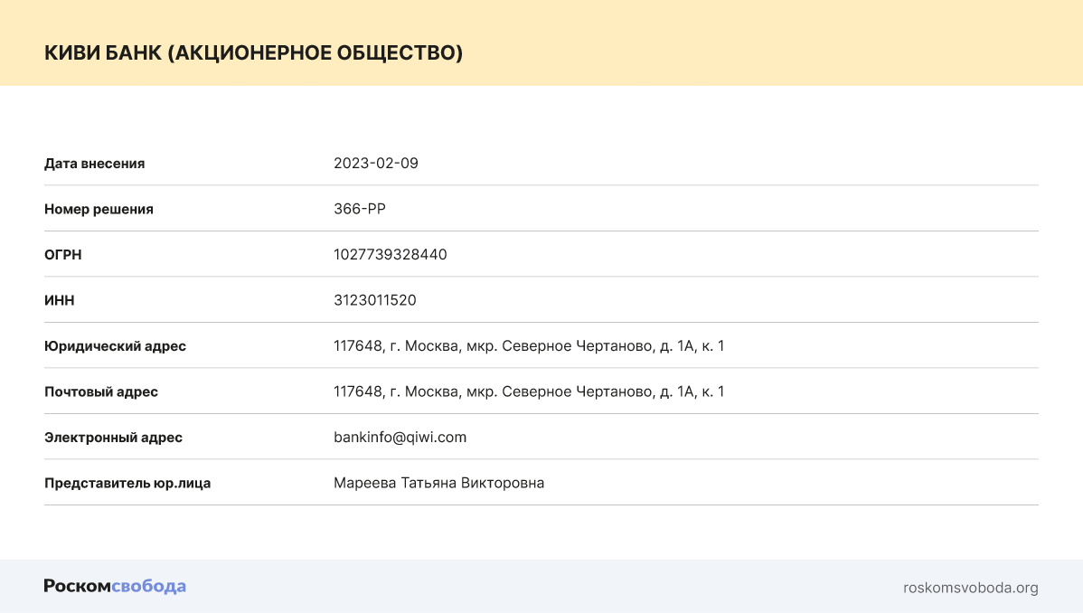 Сайт «КИВИ Банка» внесён в реестр организаторов распространения информации (ОРИ), что обязывает данный сервис передавать не только данные пользователей, но также и их возможные взаимодействия.