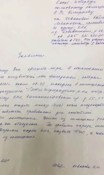 Л. тем временем направила официальные письма в прокуратуру, Главное следственное управление СК РФ по СПб и в МВД. Хотела выяснить как минимум, в какую организацию ее с такой педантичностью вызывают на допрос и насколько легитимны действия задержавшего ее полицейского. Все заявления сдала лично. На всех есть входящие номера. Без реакции, пусть и формальной, такие документы остаться не могли. Можно предположить, что и они сыграли свою роль в этом деле.