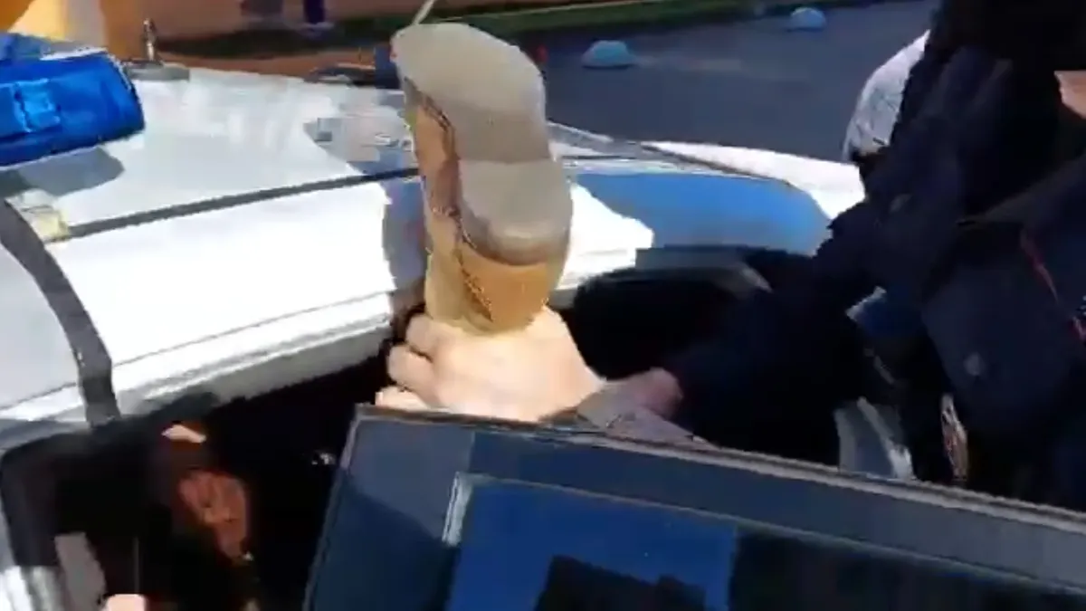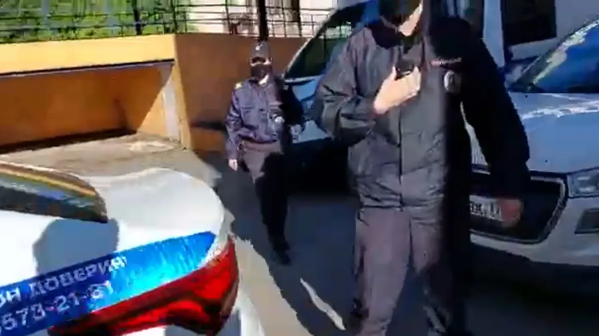 Из одной машины выходит сотрудник в бронежилете, из другой — с дубинкой. Судя по количеству полицейских, мы наблюдаем не локальное задержание, а полноценный захват.
