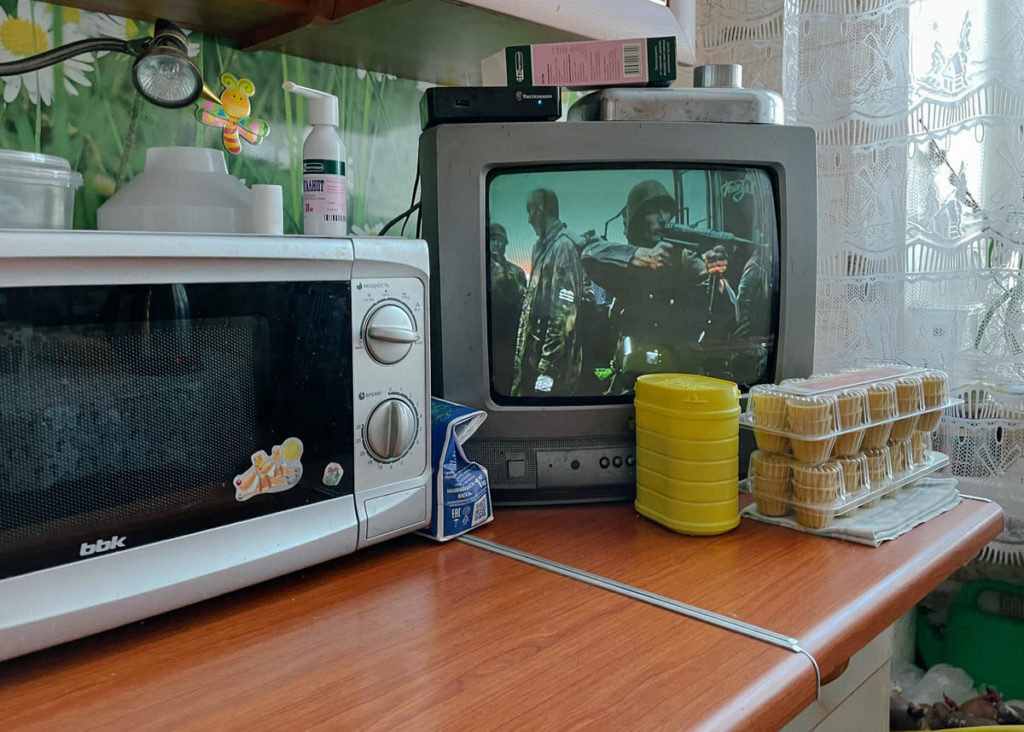 Мария — одна из тех, кто сдаёт мобилизованным комнату в своей квартире. Ночь — две тысячи. Мария выходит к нам в лосинах и бесформенной кофте. Удивляется, что мы без мужчин. В комнате, которую она нам выделяет, кровать и диван, на полке под потолком — детские снимки дочери и внука. Мария просит не крутить дверные ручки — их за четыре месяца с начала мобилизации сломали или с корнем выдрали предыдущие квартиранты. В кухне пахнет луком, на плите в кастрюле пузырится густой суп. По телевизору — канал с фильмами о войне.