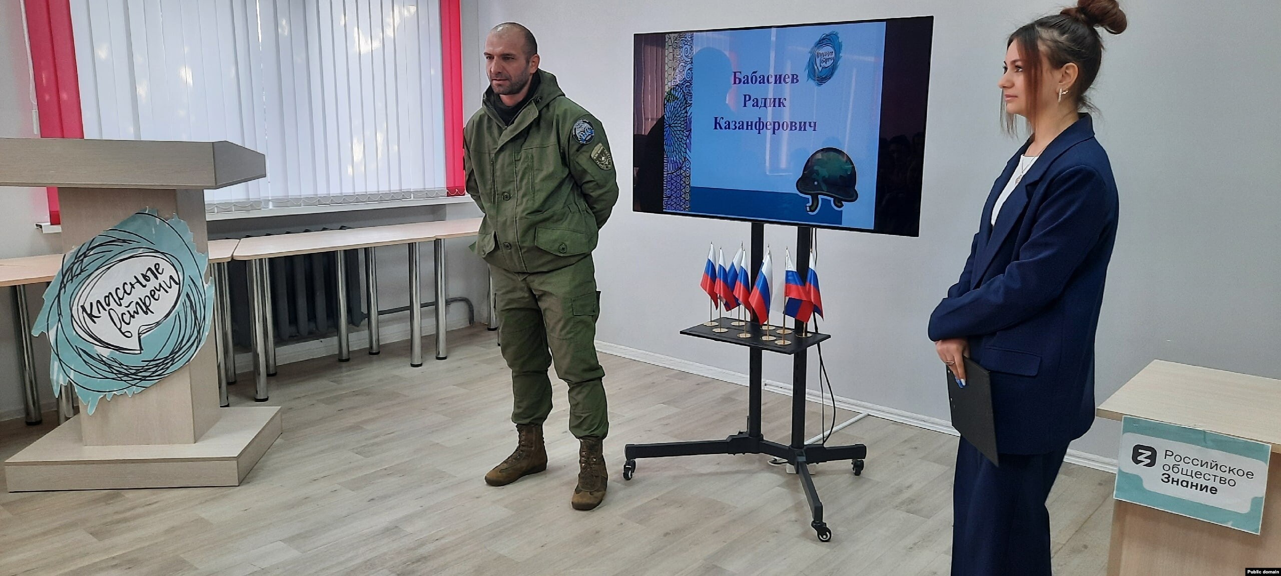 Информация о встрече Радика Бабасиева с учениками 5-х, 8-х, 9-х и 11-х классов размещена на официальной страничке школы в социальной сети "ВКонтакте". В публикации Бабасиев назван "добровольцем", отмечается, что речь на встрече шла "о жизни в военно-полевых условиях, необходимых для каждого военнослужащего навыках, выборе профессии, воинском долге перед Родиной и мирными жителями, гранью между страхом и трусостью".