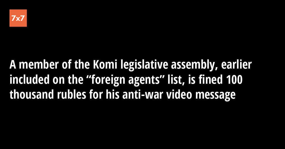 A member of the Komi legislative assembly, earlier included on the “foreign agents” list, is fined 100 thousand rubles for his anti-war video message