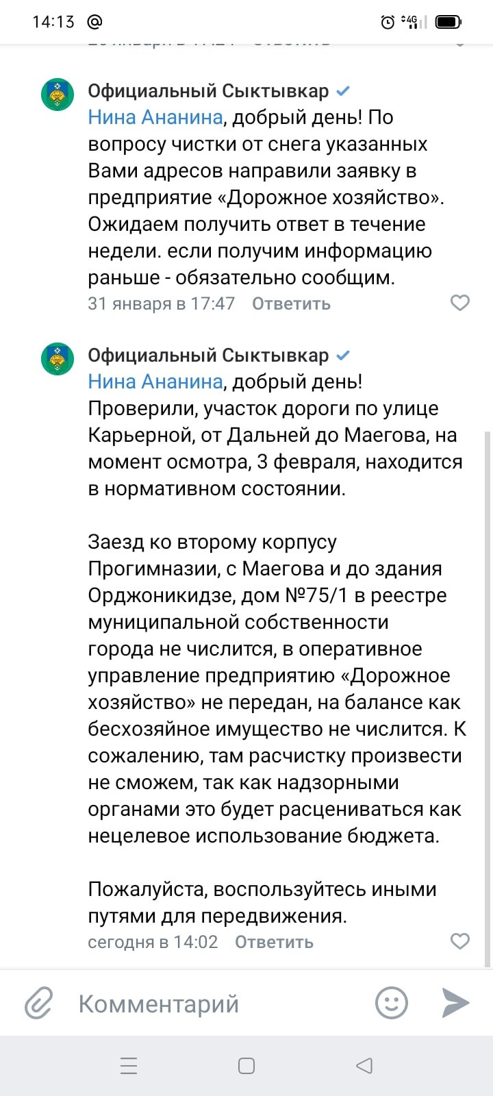 В итоге мало того что дорогу почистили (не идеально и только один раз, но придираться не будем особо пока), но еще обнаружили «ничейную» дорогу.