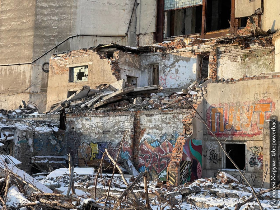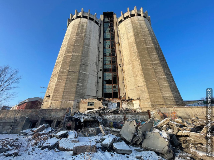Разрушение элеватора началось втихую, пока еще идут суды. Ситуация достаточно банальная. Если какой-то дом на нужном месте мешает застройщикам, в одну темную, темную ночь он «случайно» горит и на его месте наконец-то строят ЖК. Только вот элеватор не горит, и размеры у него немного больше, поэтому действуют другими методами. Его как будто специально подтачивают изнутри и снаружи, чтобы он начал активно разрушаться.