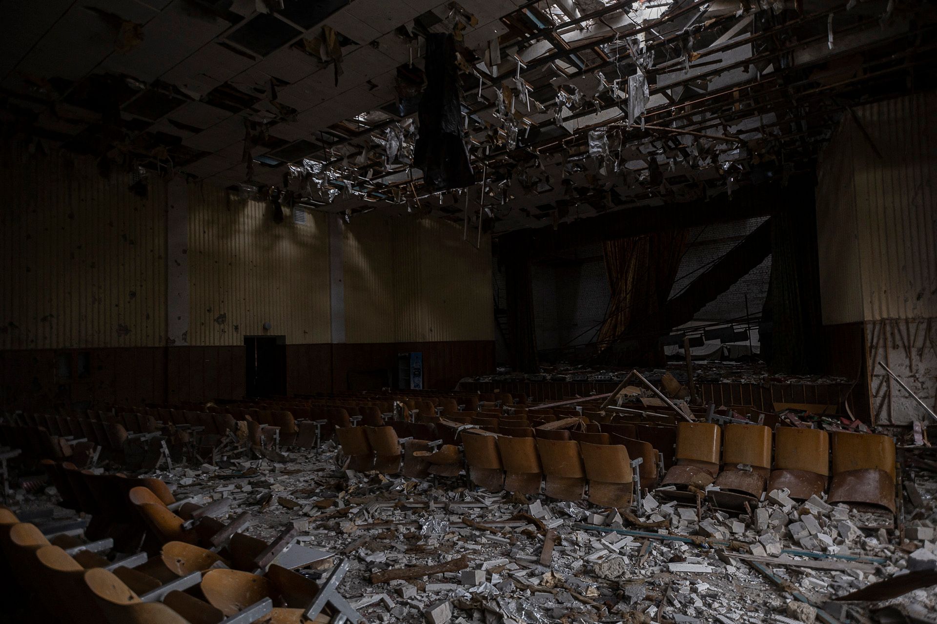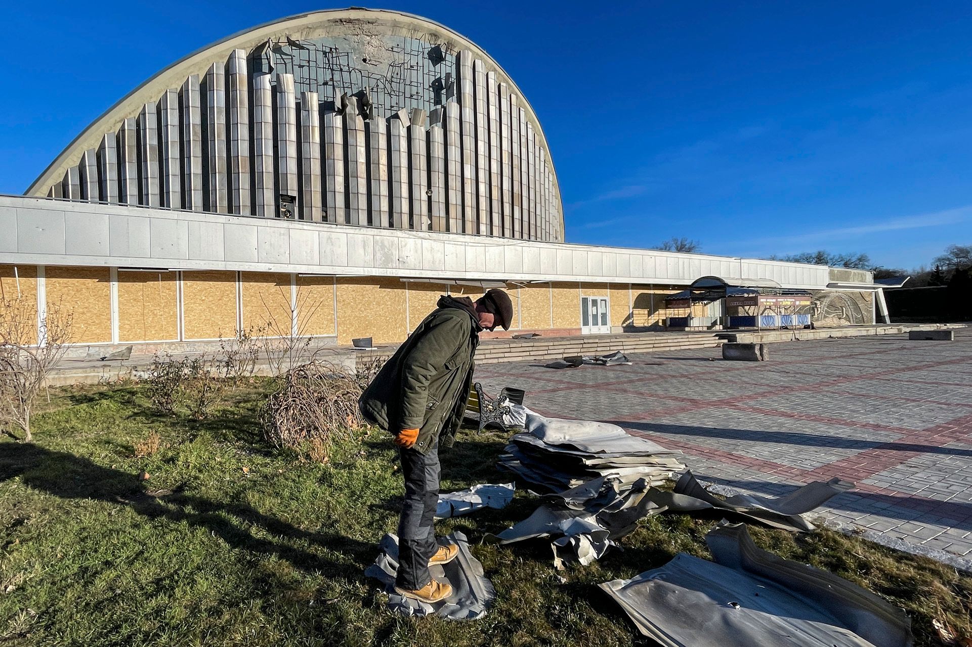 Россия отступила из Херсона в ноябре — и с тех пор регулярно обстреливает город. Один из снарядов попал в местную достопримечательность — концертный зал в стиле советского модернизма