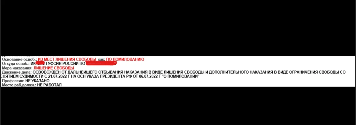 «Я попросил человека, имеющего доступ к ИБД-Ф, проверить пару зэков, которые засветились на видео с Пригожиным как пример социального лифта «Вагнера»: позавчера в тюрьме — вчера на фронте — сегодня свободен. Один — убийца, другой, говоря дореволюционным языком, — разбойник. У обоих в ИБД-Ф стоит одна и та же пометка: «Освобожден от дальнейшего отбывания наказания на основании указа президента “О помиловании”»», — сообщил Захаров.