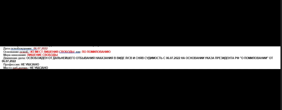 Ранее член Совета по правам человека при президенте России Ева Меркачева рассказывала, что формально заключенных освобождают еще до того как их вывозят из колоний для участия в боевых действиях. Она также говорила, что процедура помилования является государственной тайной.