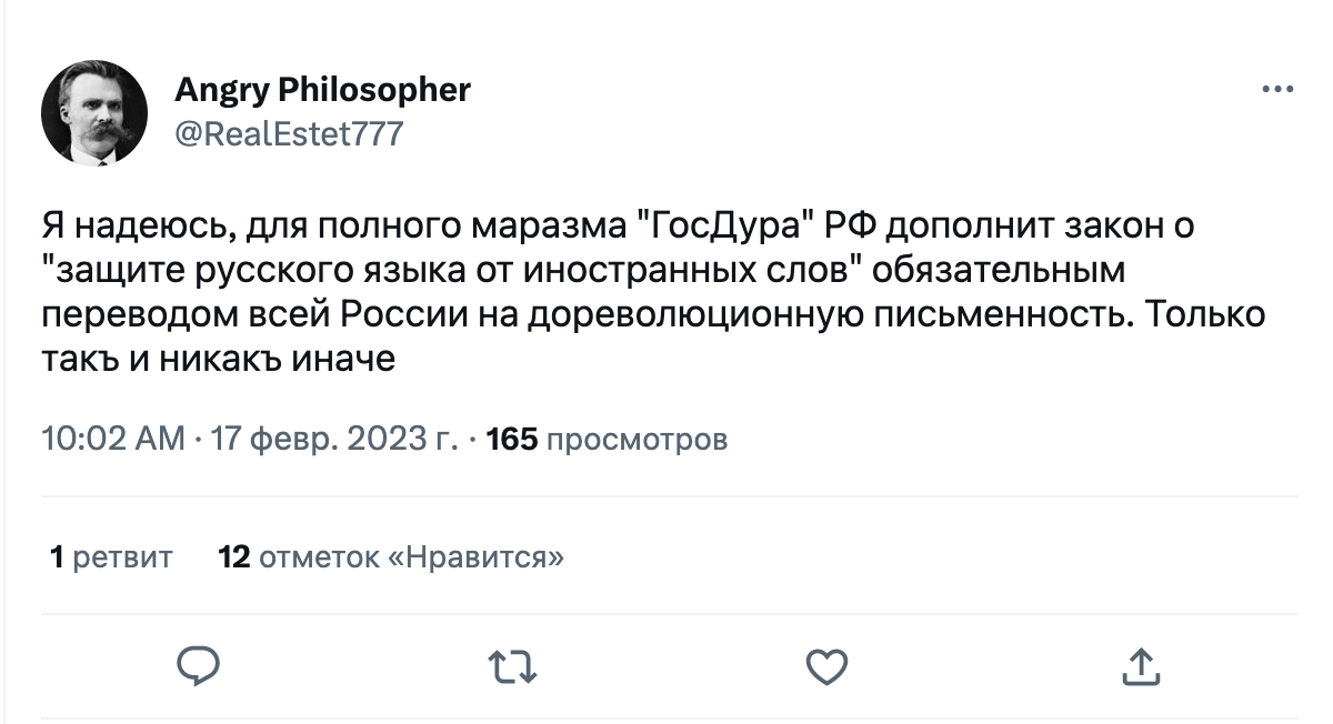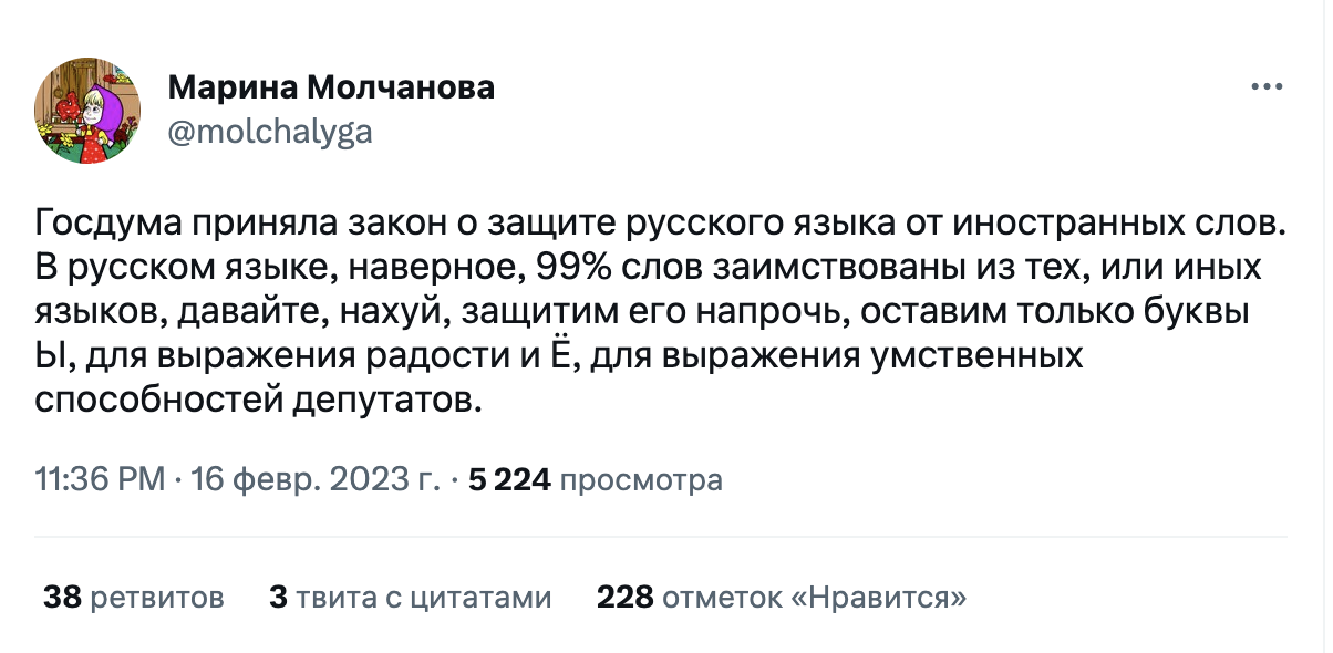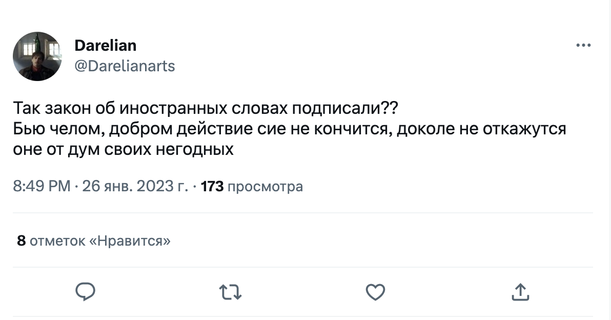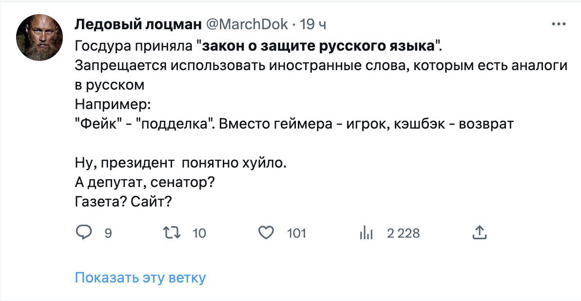 Как на закон отреагировали в интернете. Твиттер отреагировал на принятие закона как обычно — шутками. Пользователи иронизируют над словами, которые придется заменять, а также над тем фактом, что в русском языке исторически много заимствований.