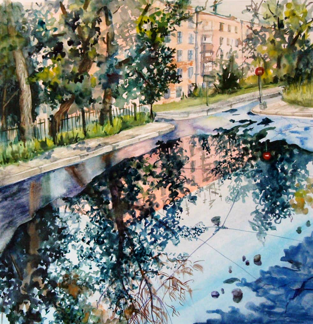 Смотрите, как петербургские художники изобразили дома и дворы в районе Нарвской заставы, на месте которых хотят рано или поздно построят новые ЖК, съезд с моста и терминал железной дороги.