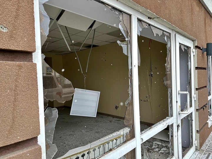 По словам Гладкова, снарядами сильно покорежило торговые павильоны, выбило стекла в торговых центрах и посекло фасады зданий.