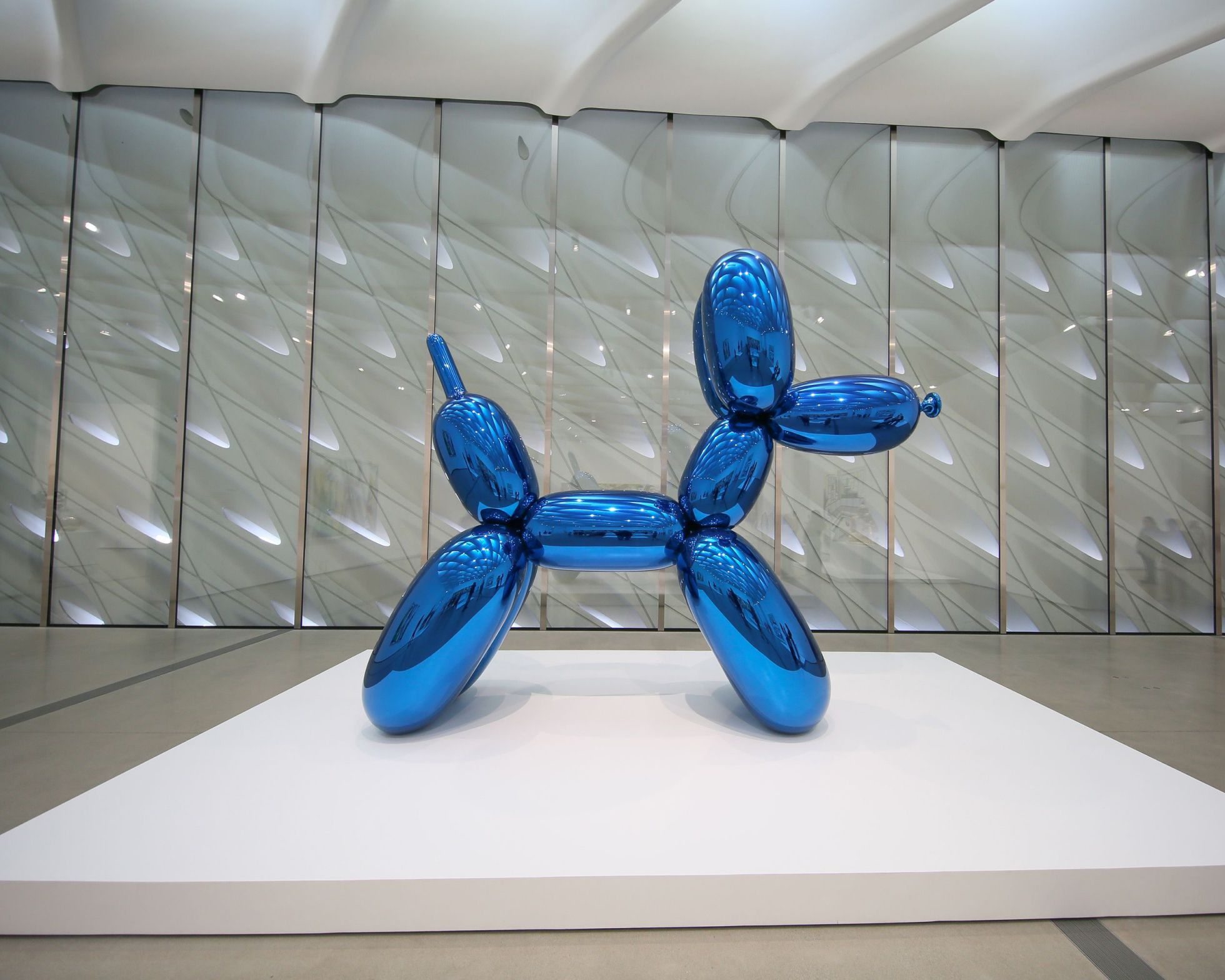 - Произведения Джеффа Кунса одни из самых дорогих в мире, а скульптуры, имитирующих фигурки из воздушных шаров — одни из самых узнаваемых работ художника. Как отмечает The New York Times, в музеях и коллекциях по всему миру тысячи таких скульптур разных цветов. Размеры фигурок варьируются от 25 сантиметров до 10 метров в высоту. В 2013 году оранжевая версия фигурки собаки была продана за 58,4 миллиона долларов на аукционе Christieʼs. В 2019 году скульптуру Кунса «Кролик» продали за 91 миллион долларов, что на тот момент стало аукционным рекордом для работы ныне живущего художника.