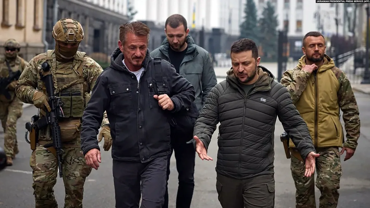 Фильм — как ускоренный курс развития конфликта, с выверенными акцентами с нескрываемым восхищением героем. По сути, и Пенн в этом проекте являет собой посла Украины в мире. И это отлично понимает Зеленский. На первой же встрече он говорит: «Сейчас очень важна всяческая поддержка. Я думаю, вы тот голос, который американцы должны услышать». На пресс-конференции Шон Пенн ему ответил, заявив, что США должны осознать «уровень позора» за то, что они не предоставили Украине помощь раньше.