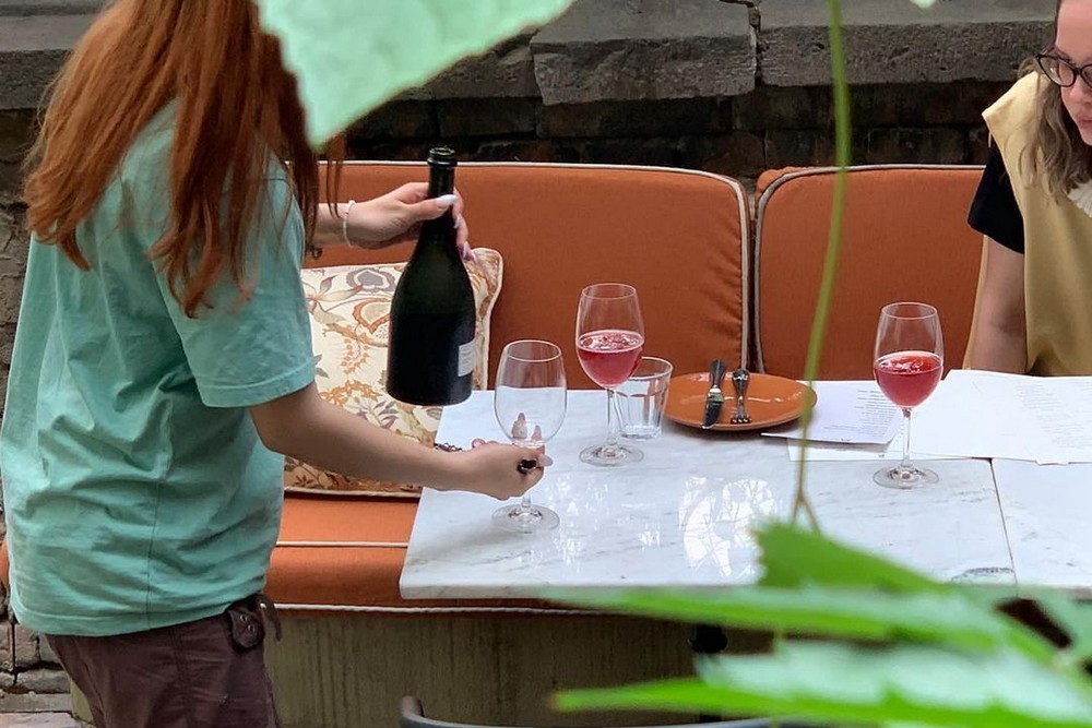 Культовый винный подвал с, быть может, самой интересной, постоянно меняющейся винной картой. Раритетов — масса. Меню еды крошечное, но сырную тарелку и хлеб с кахетинским маслом берите обязательно.