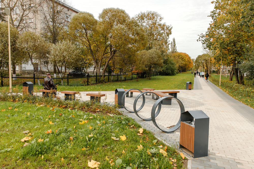 Пространство во всеволожском микрорайоне Бернгардовка создали рядом с двумя детсадами и школой. Территорию разделили на три части: участок для отдыха, прогулочную зону и детскую площадку. Там же обустроили тротуары, провели озеленение и установили велопарковки и качели. Позднее в пространстве обещают создать тренажерную зону, футбольное поле, площадки для волейбола и баскетбола.