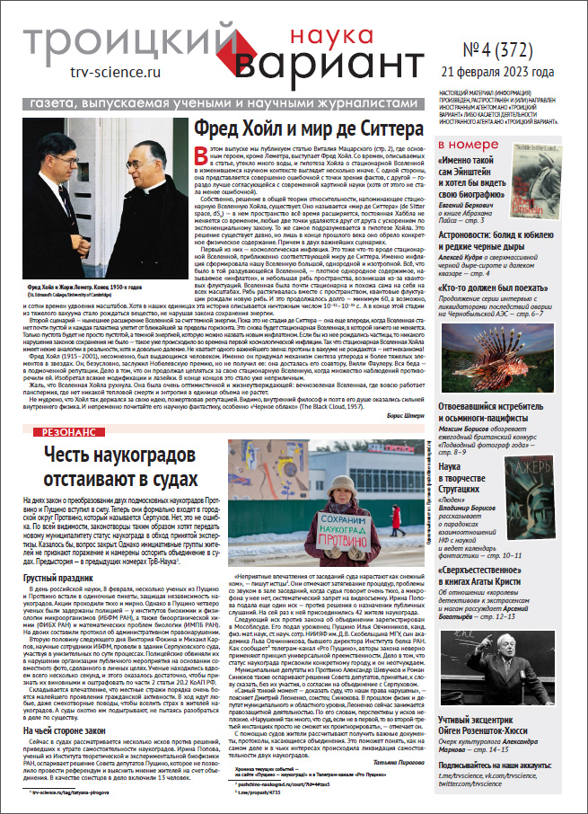 Весь номер газеты «Троицкий вариант — Наука» № 372 от 21 февраля 2023 года в PDF