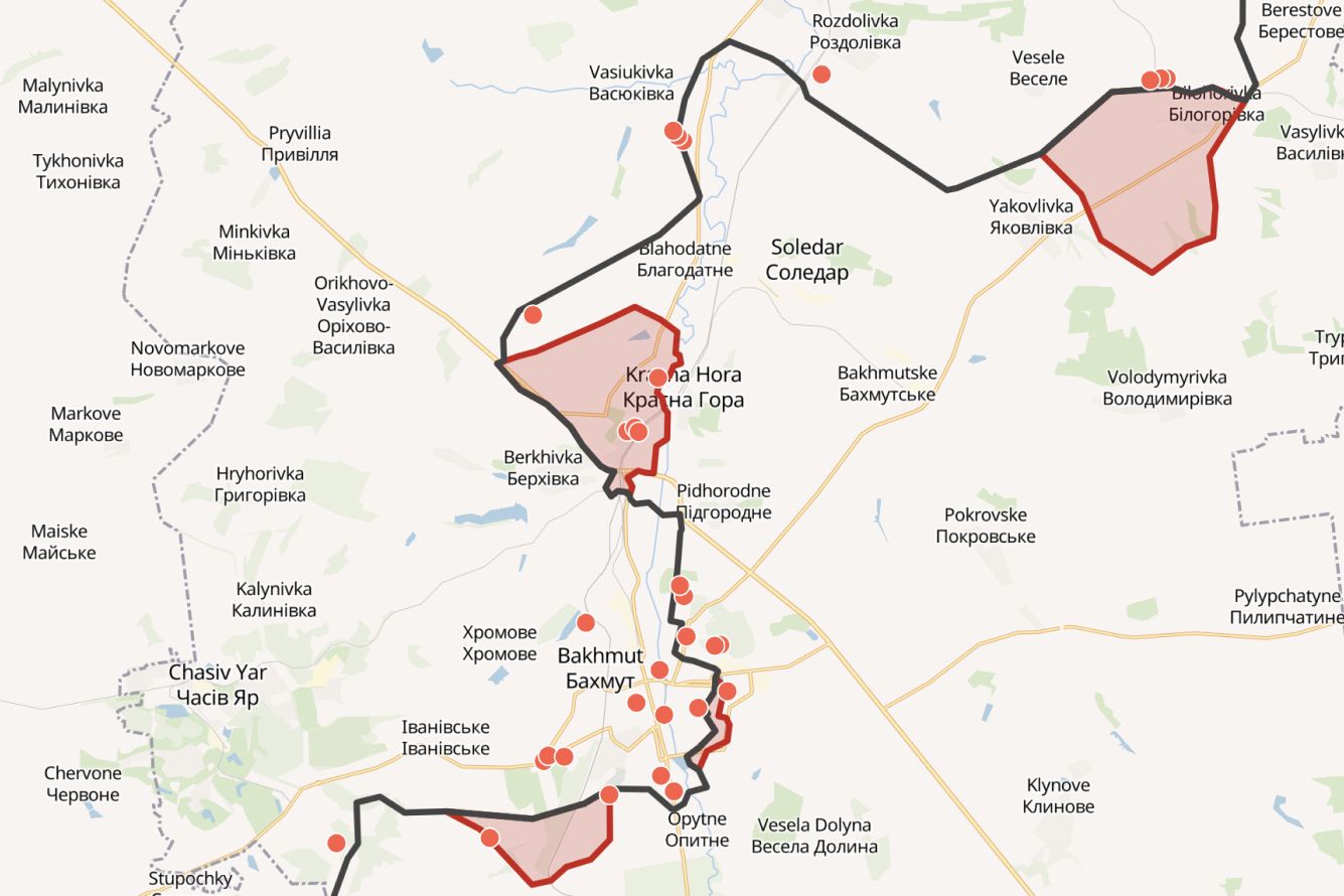 - After capturing Paraskoviivka (a northern suburb of Bakhmut), the mercenaries crossed the Bakhmut–Slovyansk thoroughfare and came up to Berkhivka and Yahidne. As of the time of the last update to our combat map, not a single photo or video confirmed Wagner Group’s presence in those villages or on top of the hill between them. Still, both sides acknowledge the fighting that’s now taking place in this area.