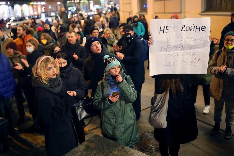 Обложка: Участники несогласованной акции у Гостиного двора 24 февраля 2022 года. Фото: Давид Френкель / Коммерсантъ