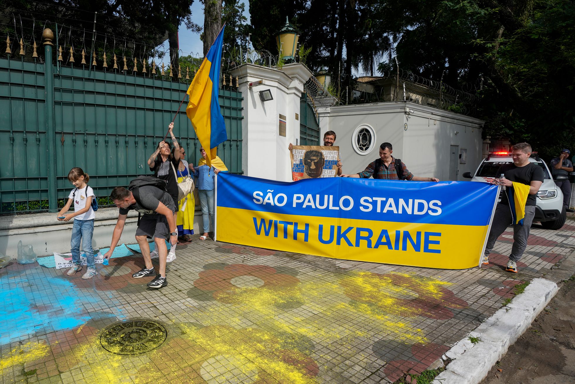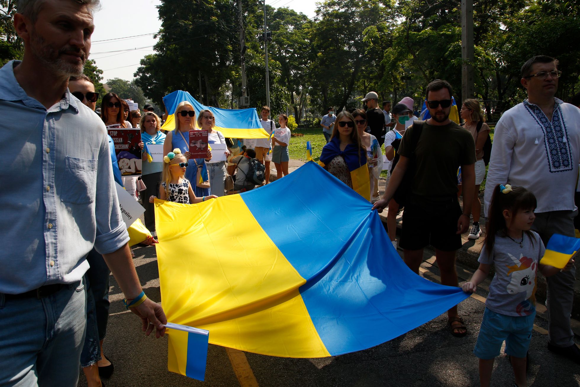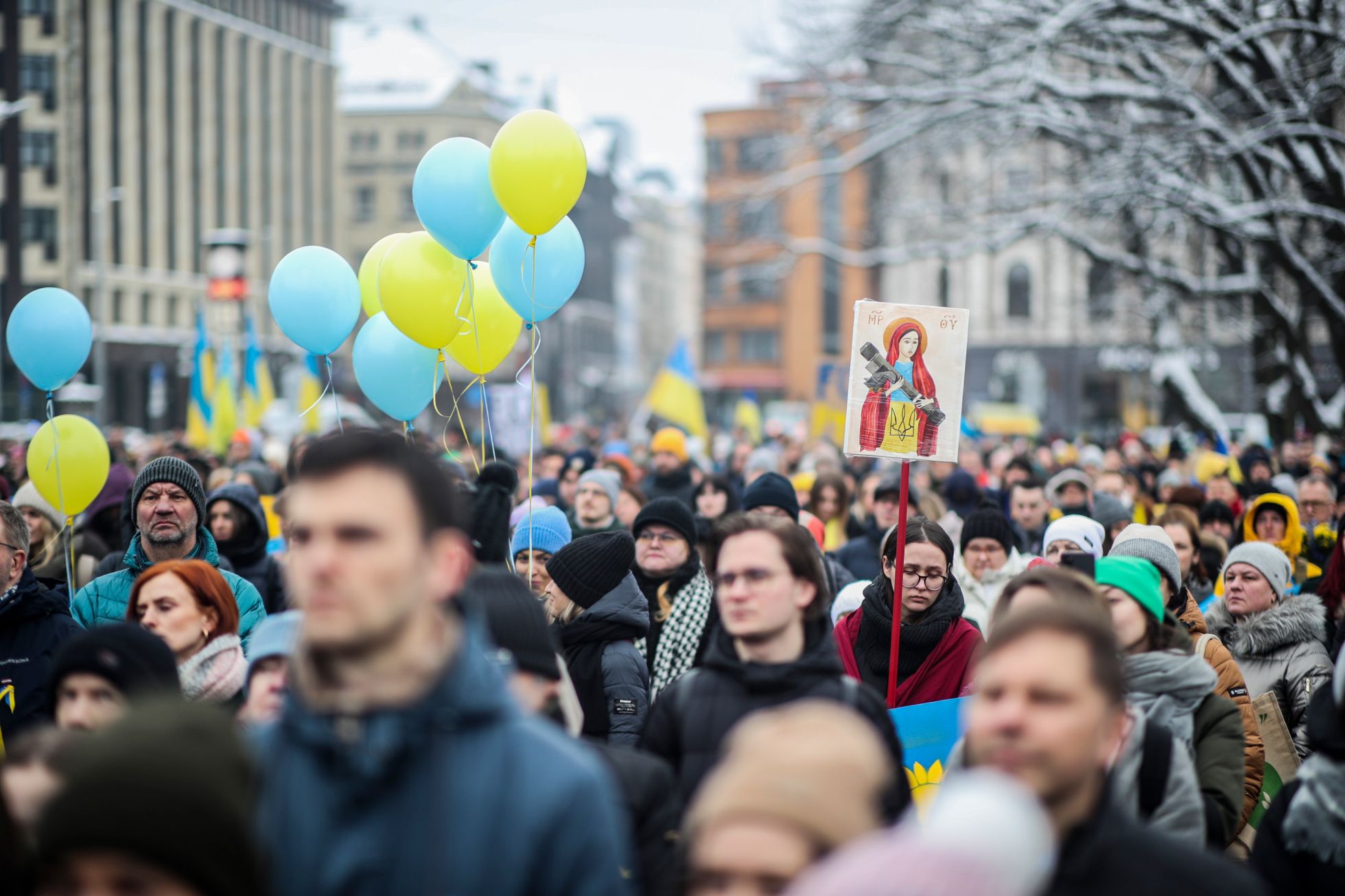 По всему миру в годовщину российского вторжения прошли акции солидарности с Украиной. Фотографии