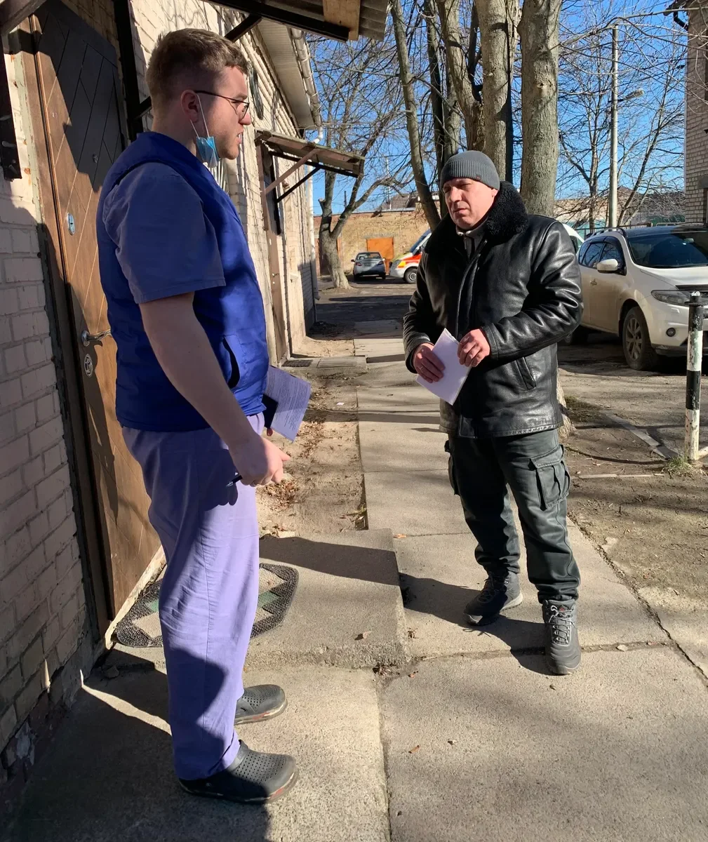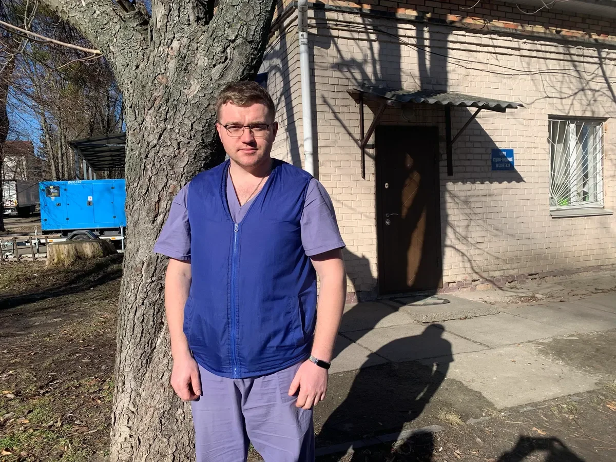 Now, in February 2023, a refrigerator van belonging to the Ukrainian Ministry of Defence was parked in the backyard of the district morgue. A gurney was pulled up to it. Staff in blue scrubs, caps, and masks began unloading the bodies. These were citizens of Bucha being brought back from the front lines. Serhiy Lyakhovich, local forensic medical expert, had only a few minutes for me.