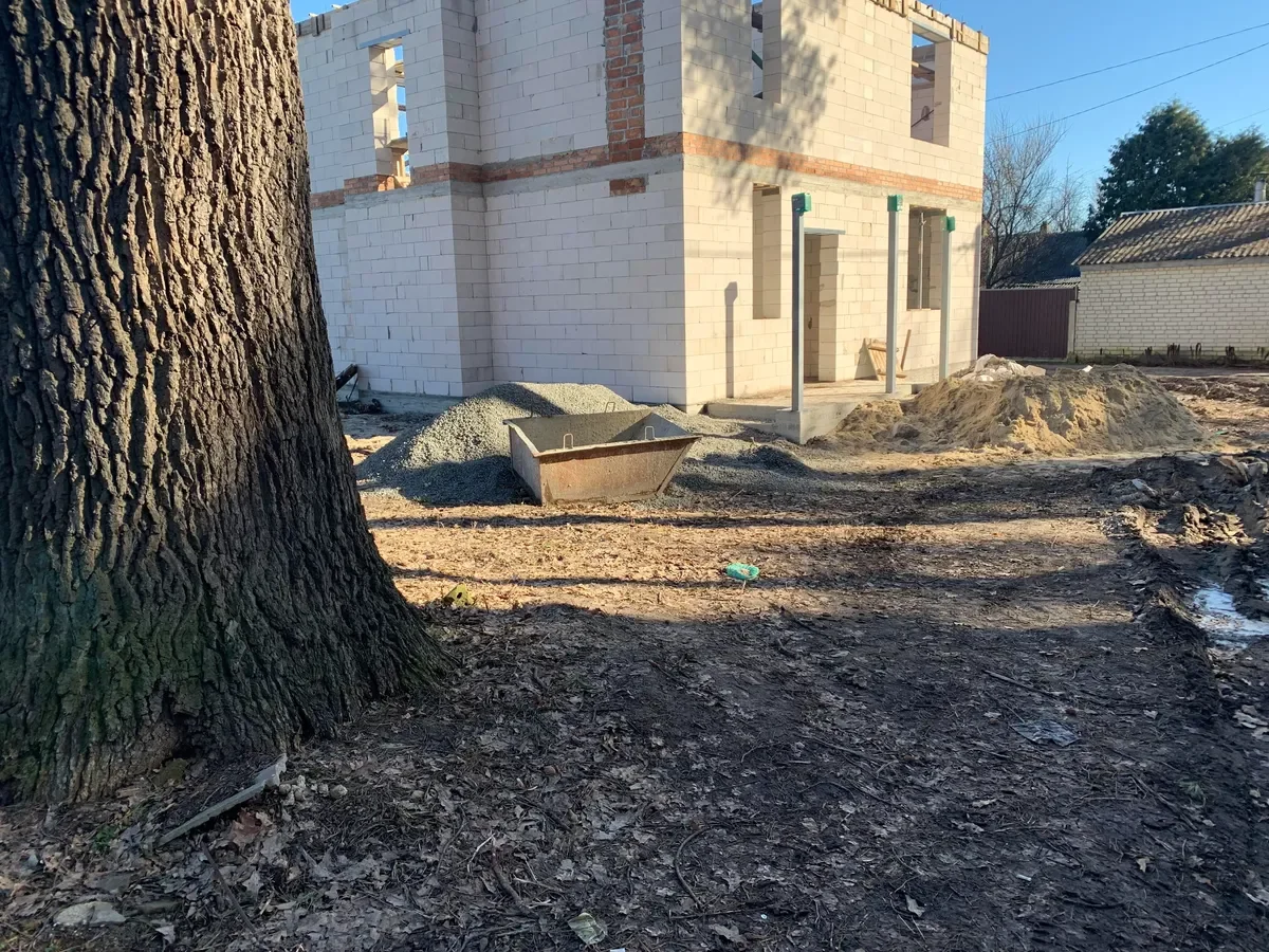 We said farewell at the massive oak tree next to the Romaniuks’ obijstya. Nearby stood the white blocks of an unfinished mansion, with forest undergrowth beginning to sprout from the mounds of rubble. A grey cat came out from the gate. It purred and rubbed itself against our feet.