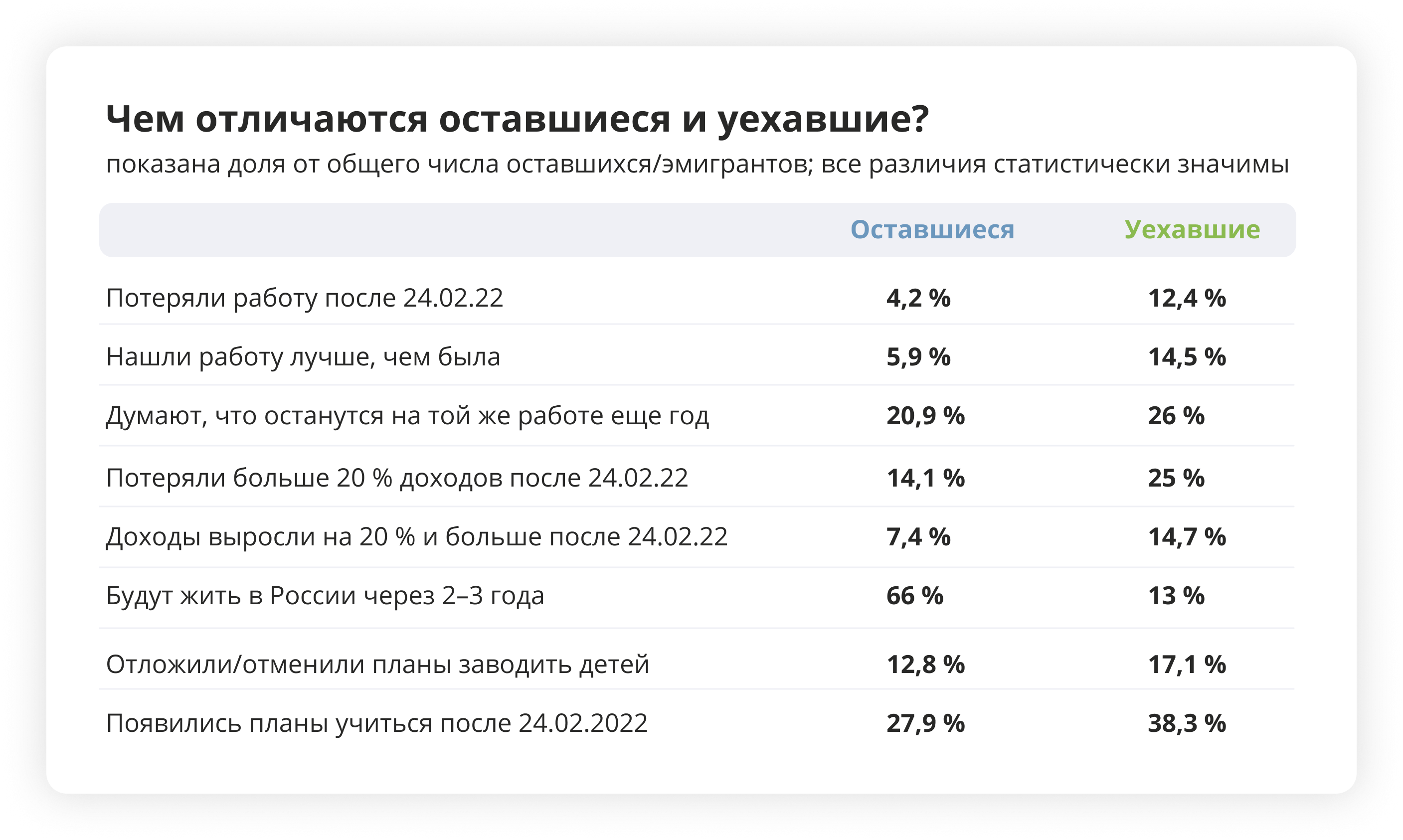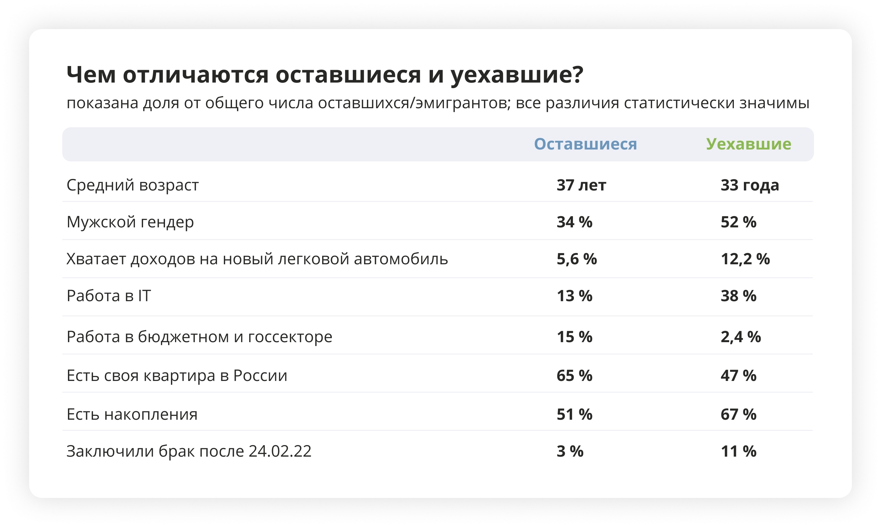 - Чем уехавшие отличаются от оставшихся