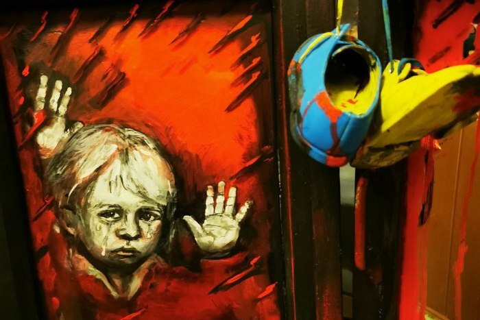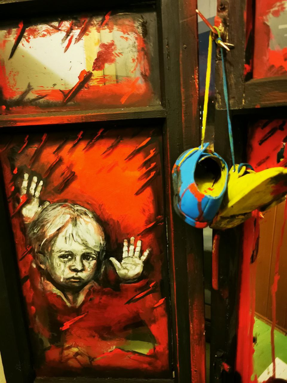 Почти все картины связаны с войной в Украине напрямую. На одной из них, например, изображен ребенок.