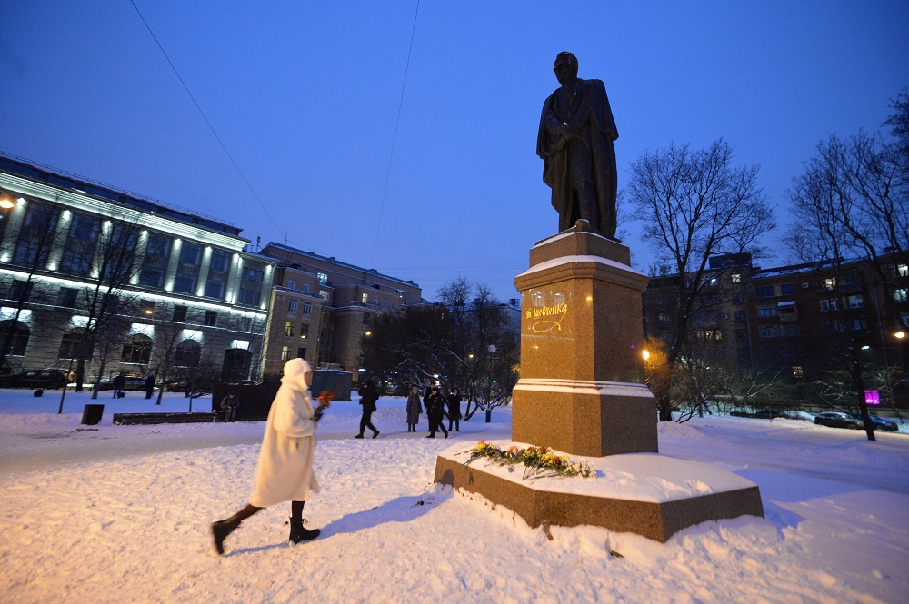 Десятки петербуржцев принесли цветы к памятнику Шевченко