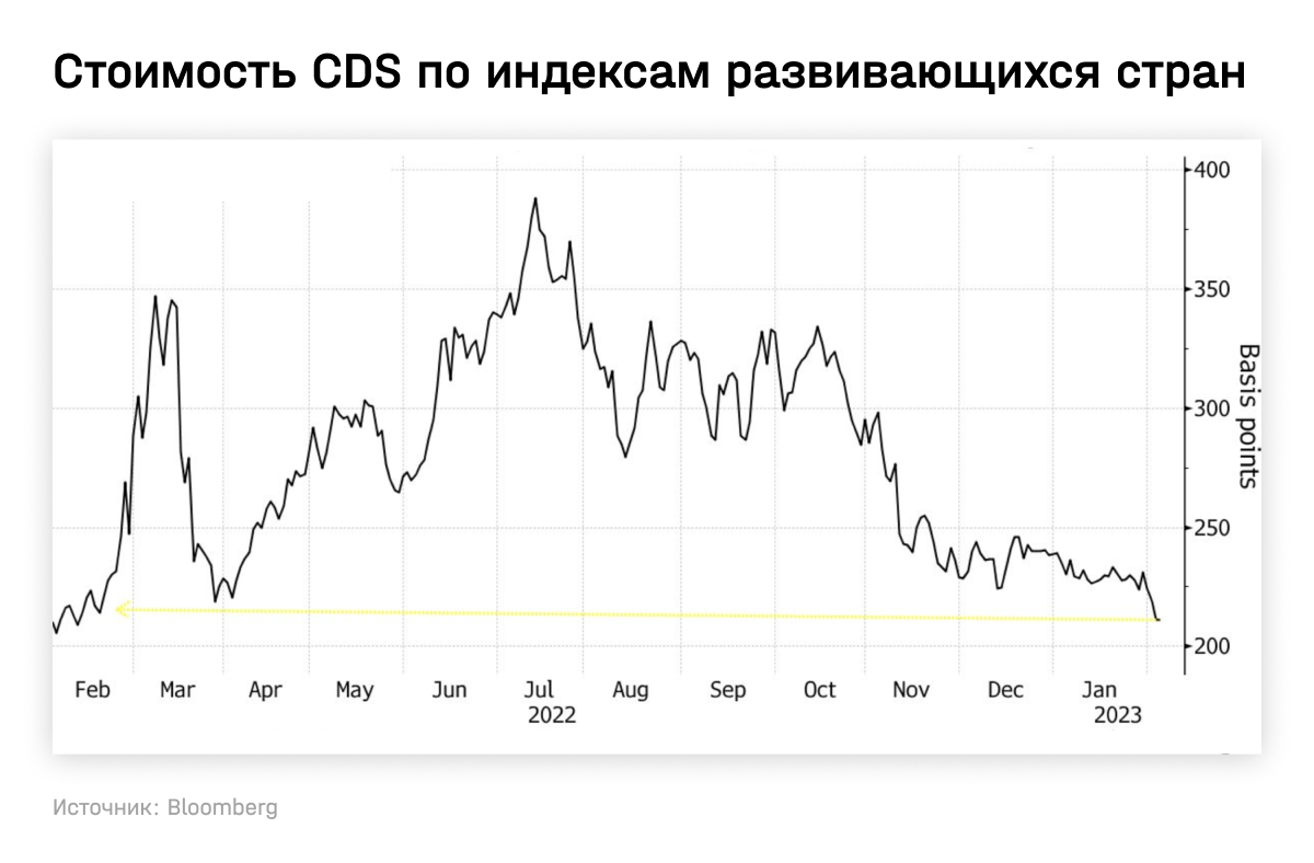 Влияние войны на долговые рынки было ограниченным. Стоимость CDS (страховки от дефолта) по долгам развивающихся стран, некоторые из которых (например, Египет) сильно зависели от поставок пшеницы и удобрений из России и Украины, вернулась на прежние уровни уже через месяц после начала российского вторжения. Дальнейший рост стоимости CDS был связан прежде всего с опасениями по поводу роста ставок и разгона инфляции.