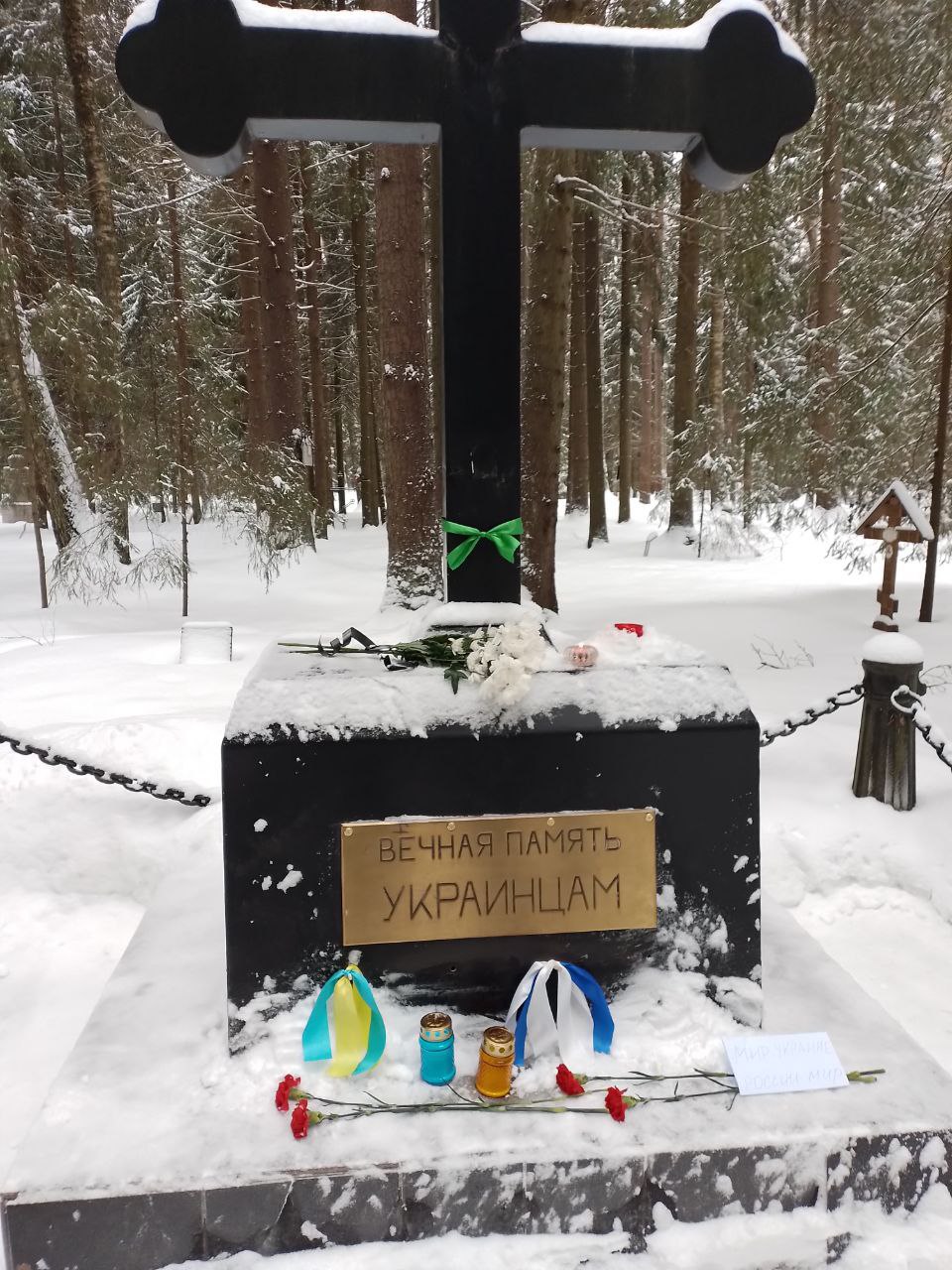 Крест в память о репрессированных украинцах был установлен на Левашовском мемориальном кладбище в 2001 году.
